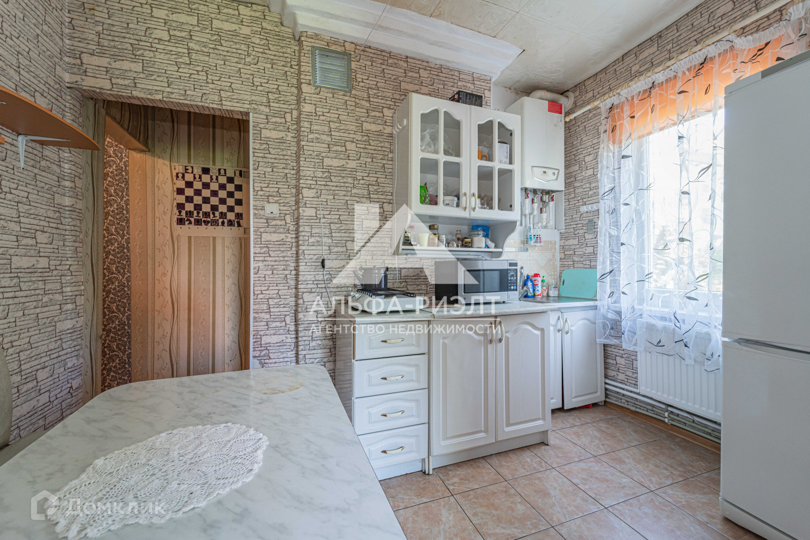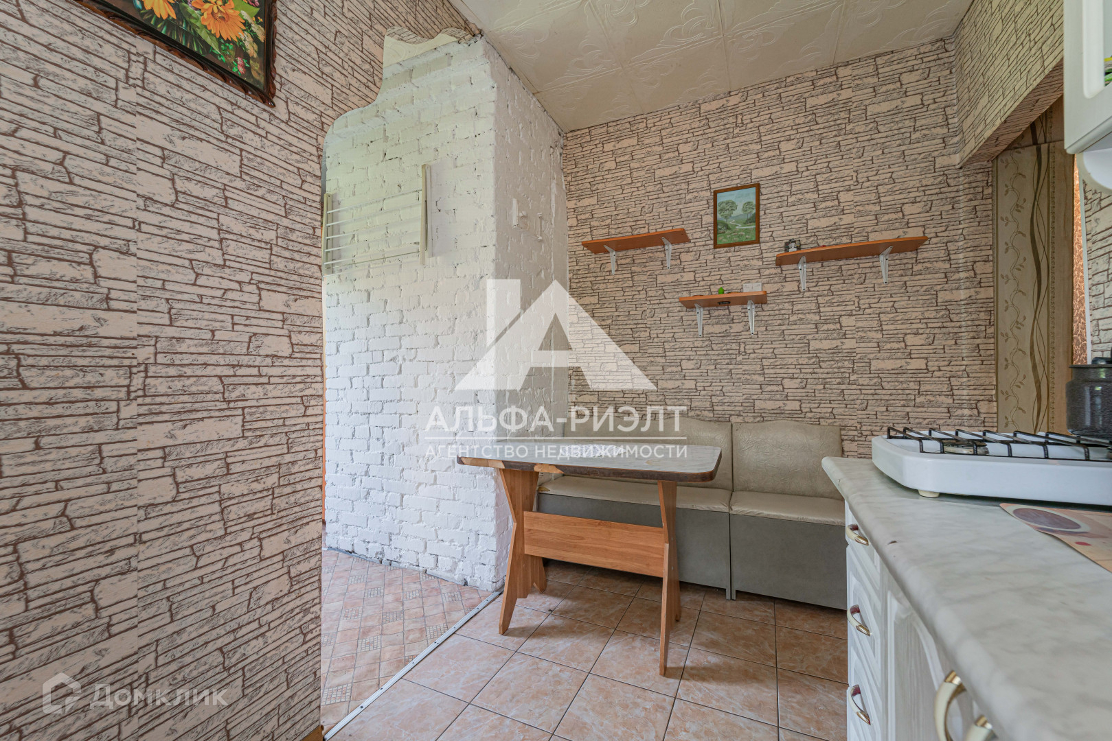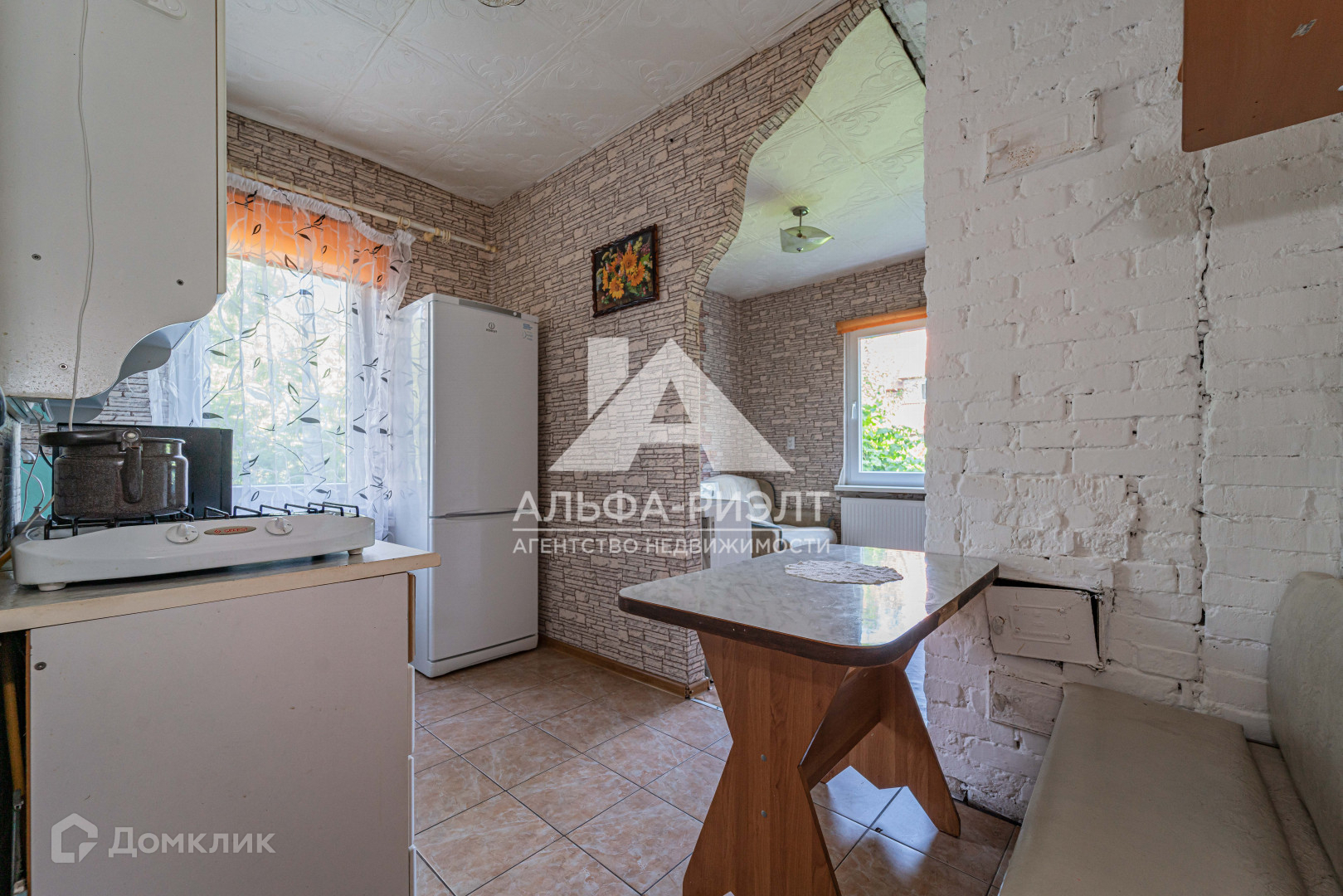 Обратите внимание на то, что в помещении кухни есть печь, которую можно демонтировать и установить современный камин. Вся мебель и техника остается.
