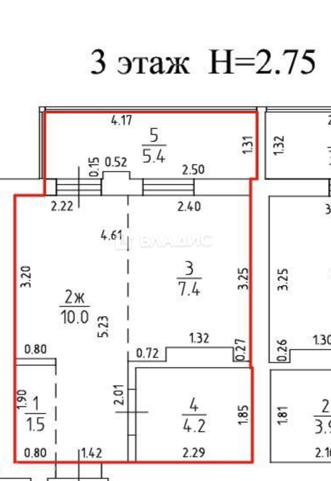 Высота потолков 2.75 м