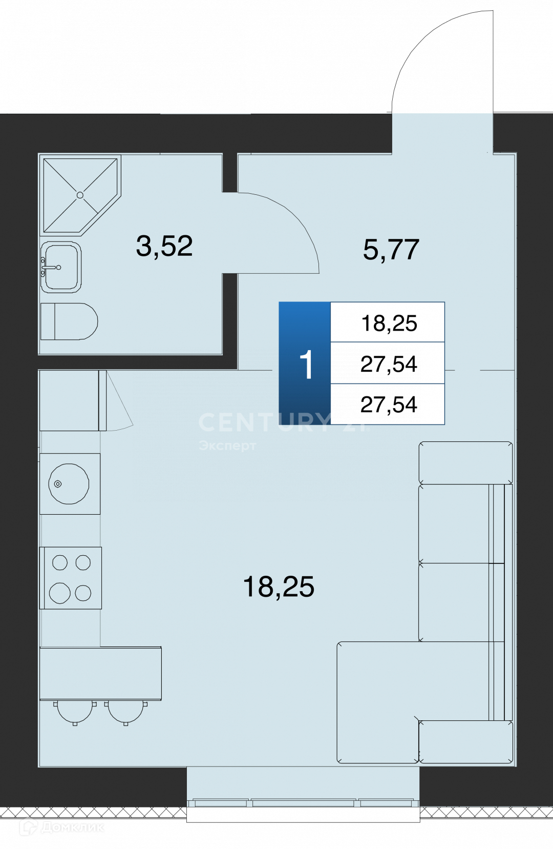 Общая площадь 27.54 м2