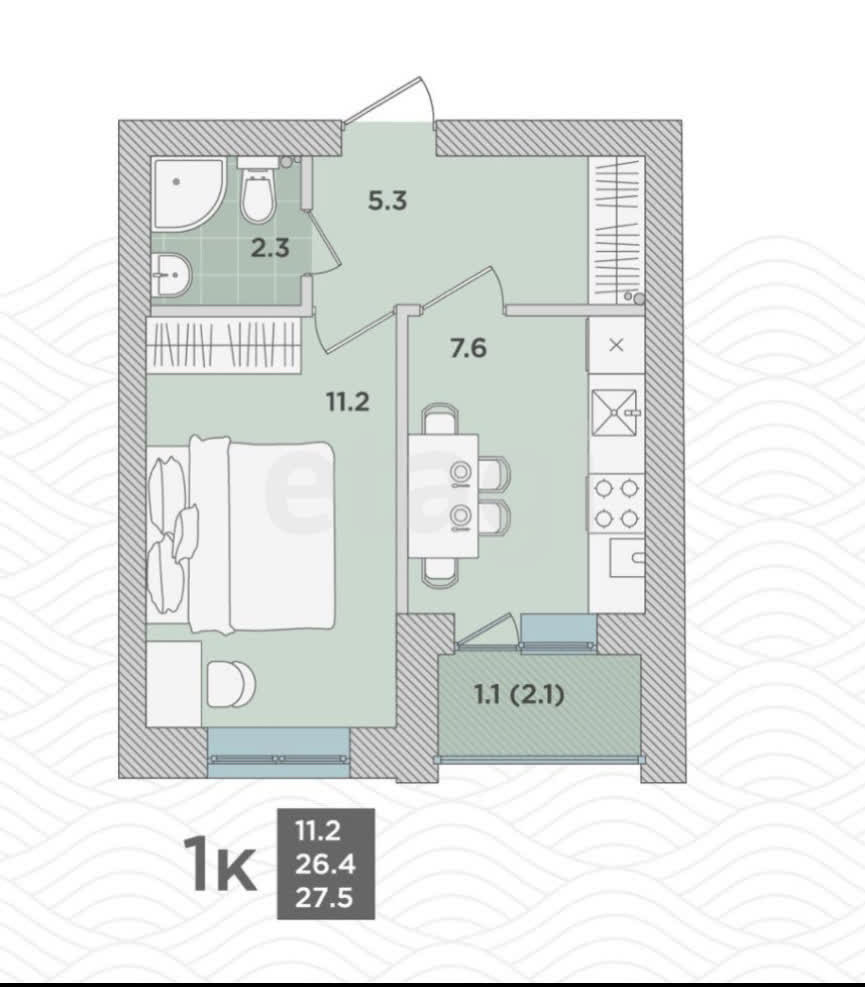 Общая площадь 27.5 м2