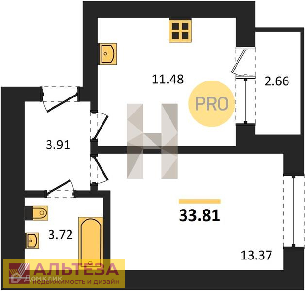 Квартира находится на 1 этаже 6 этажного дома, 2023 г.п . квартира общей площадью 33,81 кв. м , комната 14,68 кв. м, кухня 10,43 кв. м, санузел совмещенный 3,18 кв. м , есть шикарный балкон 3,32 кв. м, выход на который из комнаты . Квартира без отделки , в сером ключе с автономным отоплением ( установлен газовый двухконтурный котел ), установлены приборы учета воды, газа, электричества. Высота потолков 2,7 м.