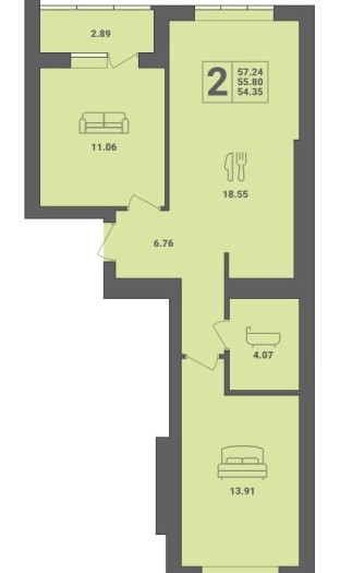 Общая площадь 57 м2