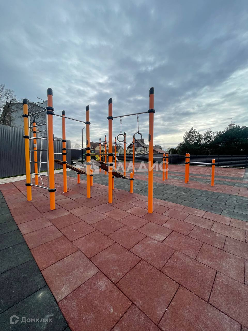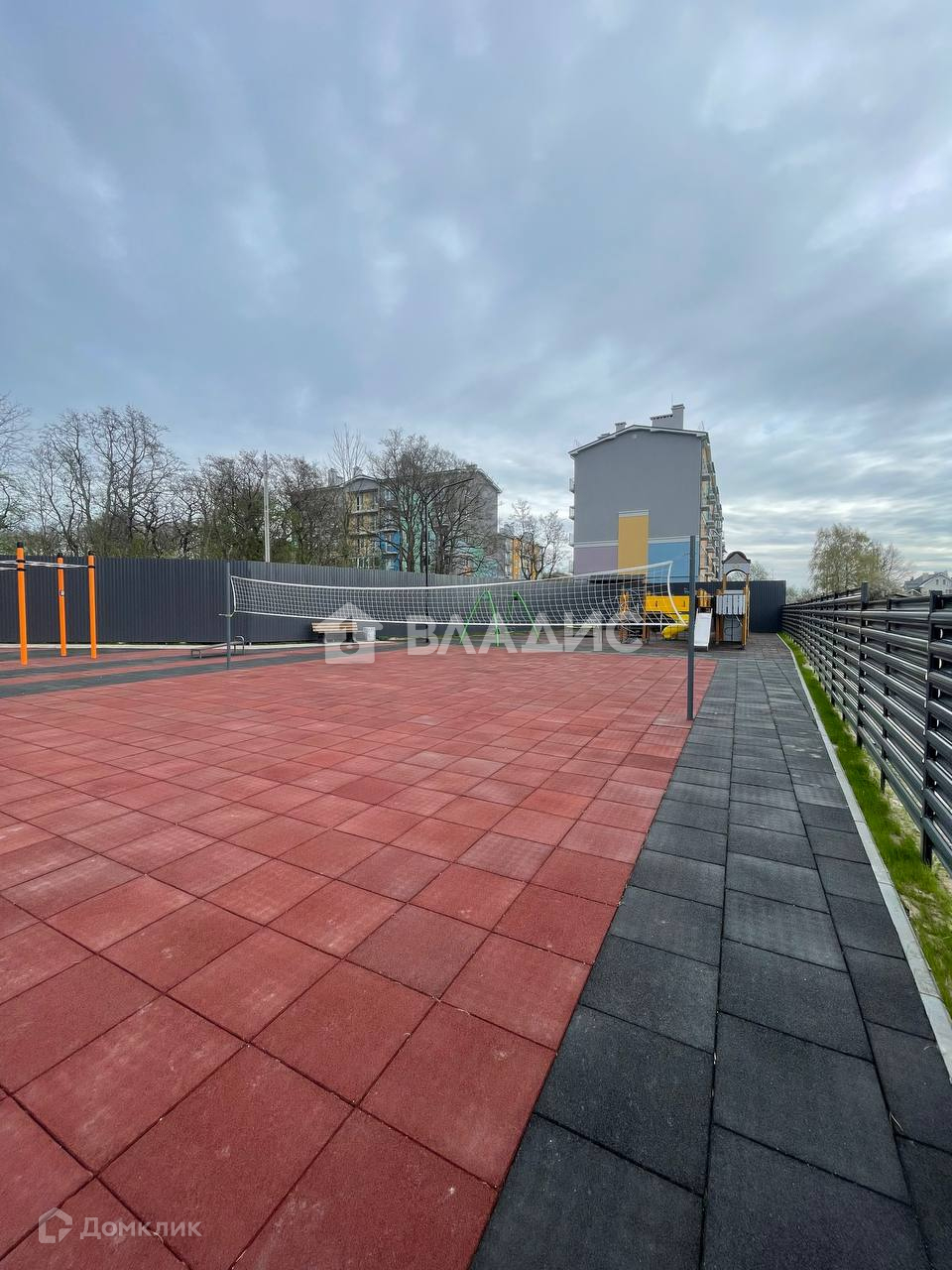 Во дворе дома просторная современная детская площадка и спортивная площадка.