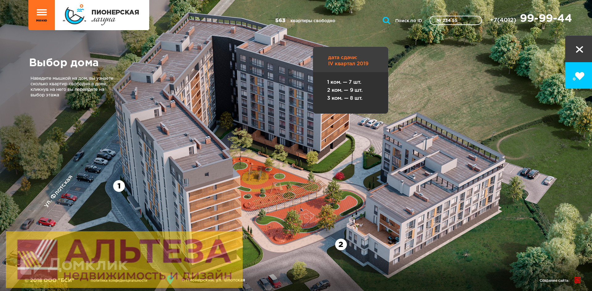 , Пионерский г, Октябрьская улица 8, 1 комн., общ. пл. 51.79 кв.м., жил.пл. 16.95 кв.м., комнаты 16.95, кухня 19.71 кв.м., 1/6 этаж, окна двор, санузел совмещенный, лоджия, без отделки, Номер лота: 4239997