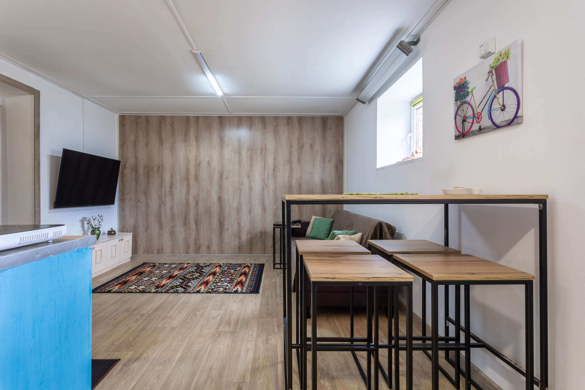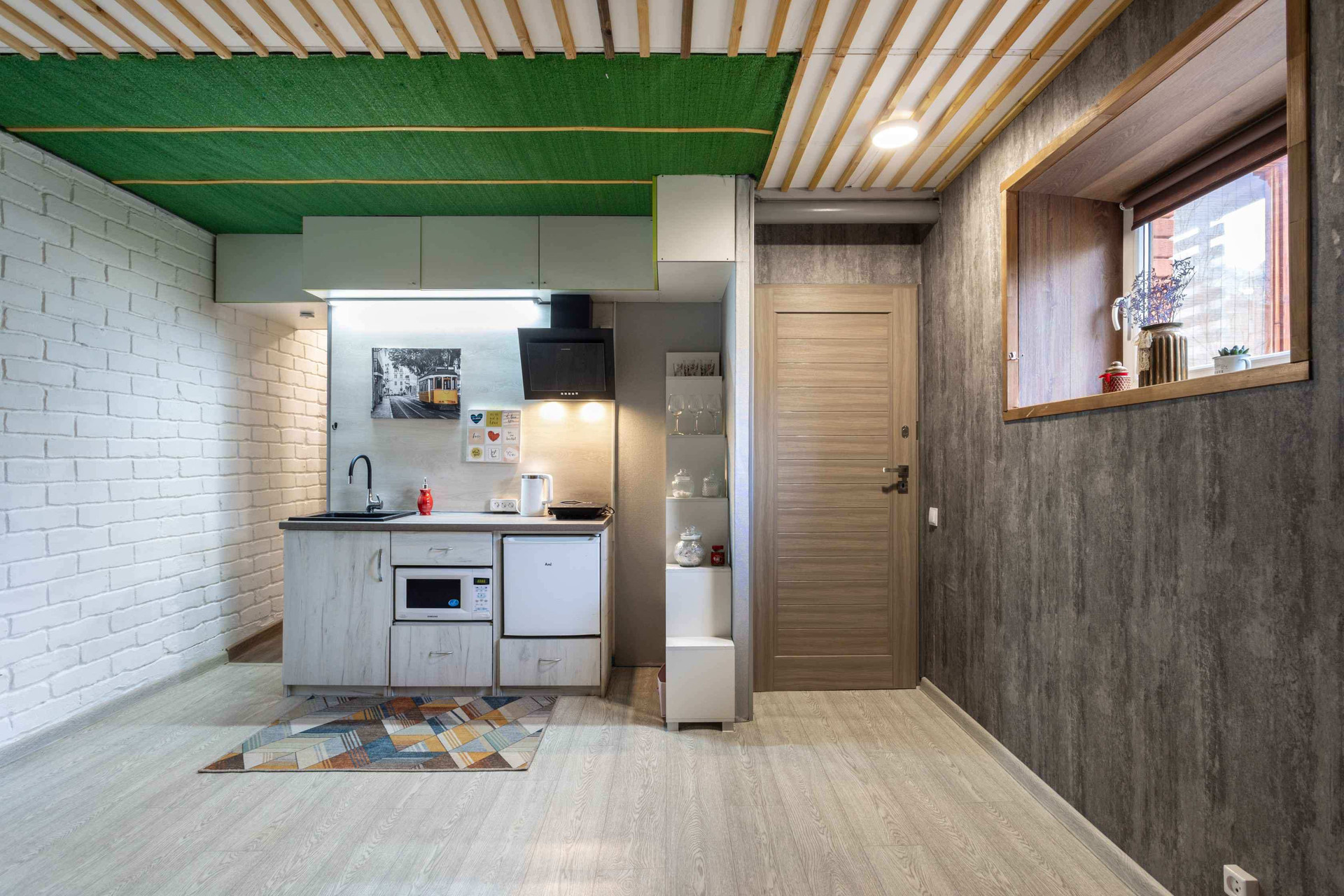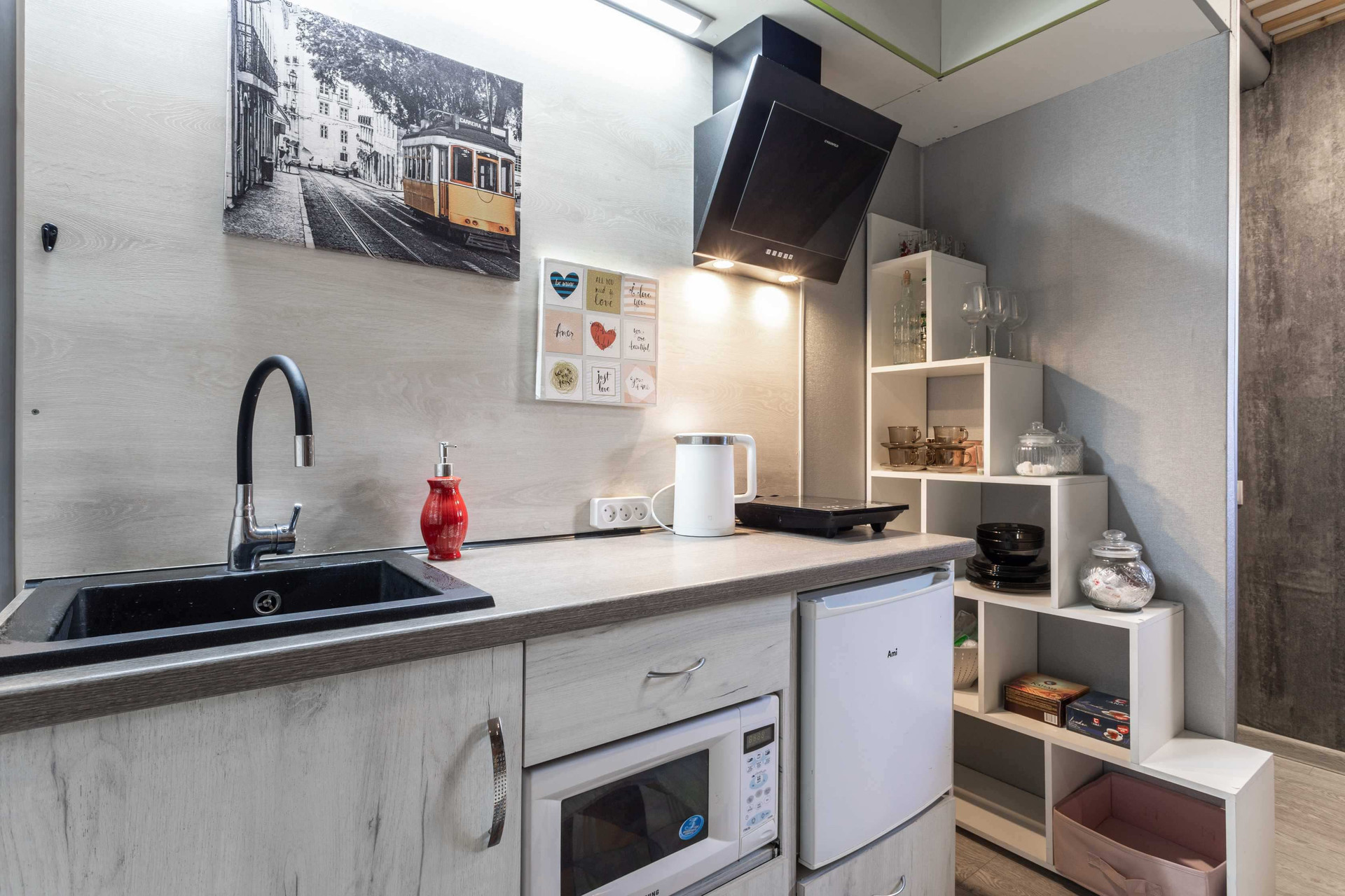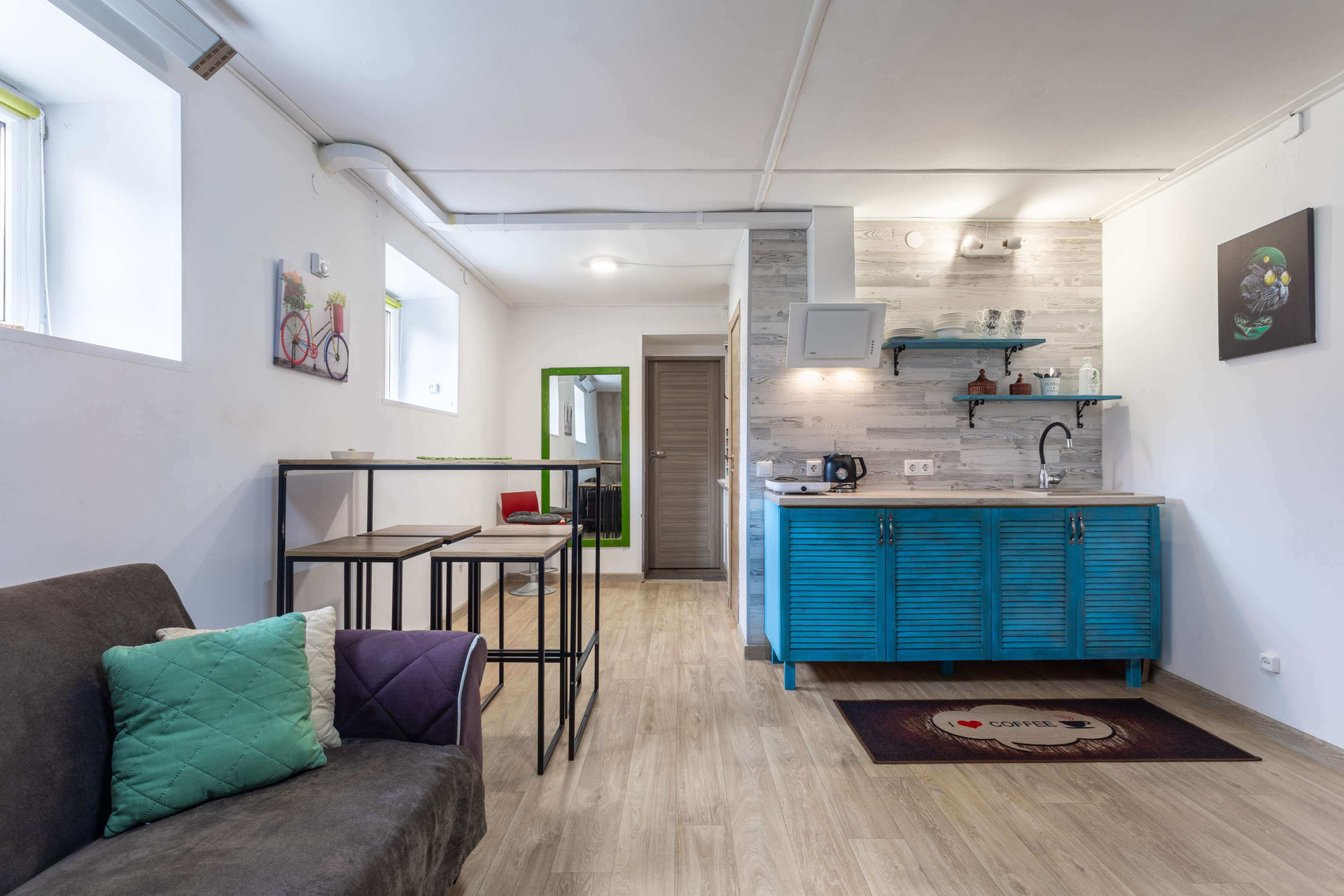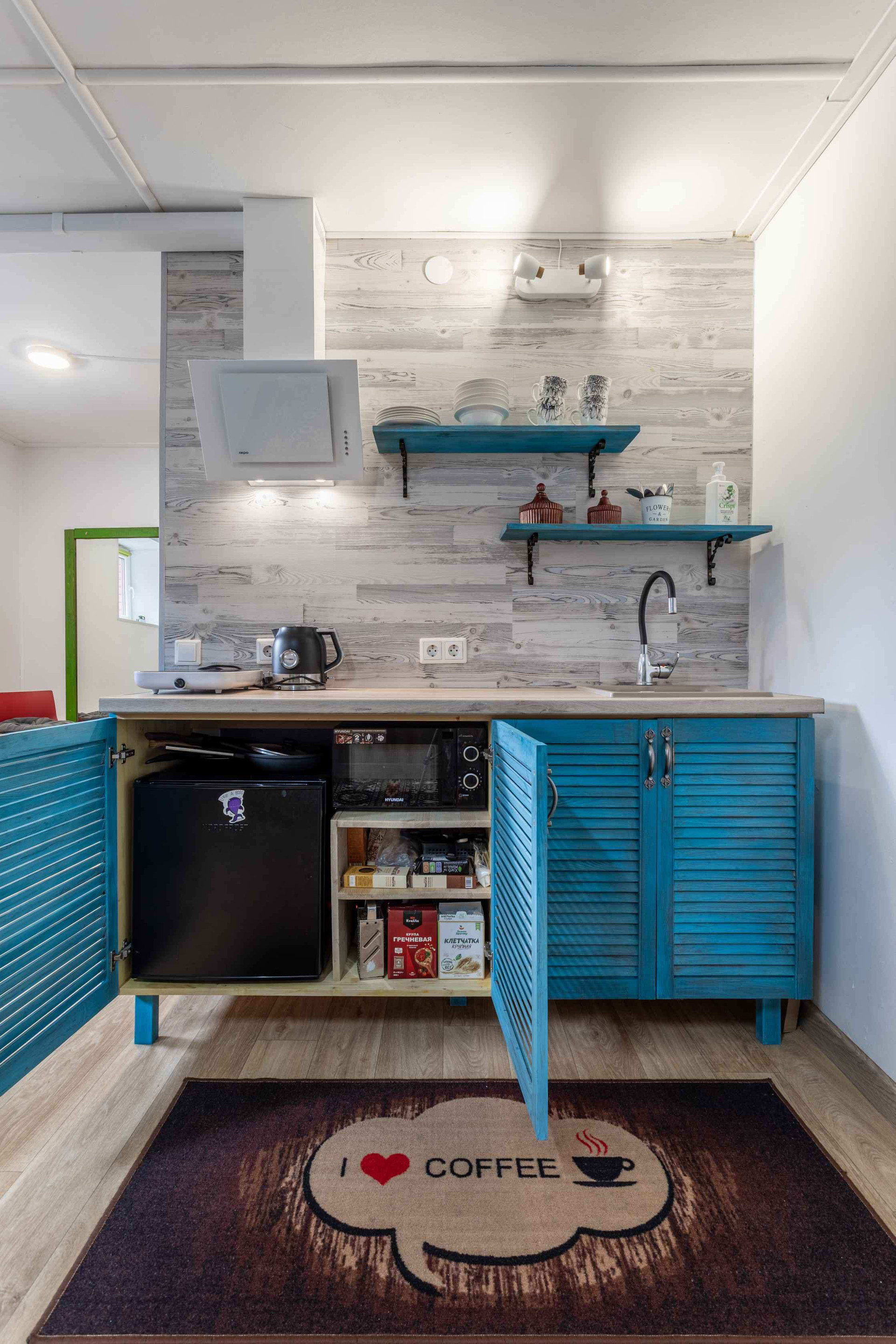 Аппартаменты разделены на две части, в каждой установлена кухня, в каждом крыле есть санузел.