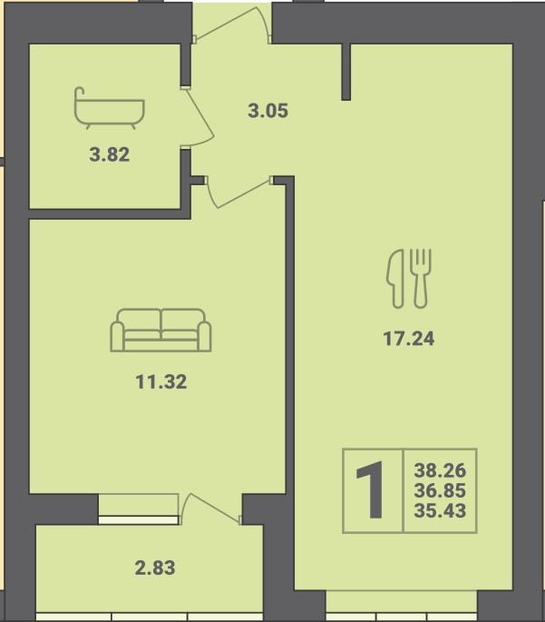 Общая площадь 38 м2