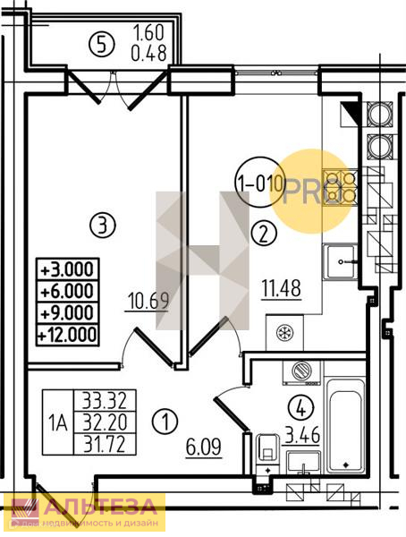 Квартира находится на 4 этаже 6 этажного дома, 2023 г.п . квартира общей площадью 32,2 кв. м , комната 10,69 кв. м, кухня 11,48 кв. м, санузел совмещенный 3,46 кв. м , есть балкон 1,6 кв. м, выход на который из комнаты . Квартира без отделки , в сером ключе с автономным отоплением ( установлен газовый двухконтурный котел ), установлены приборы учета воды, газа, электричества. Высота потолков 2,7 м.