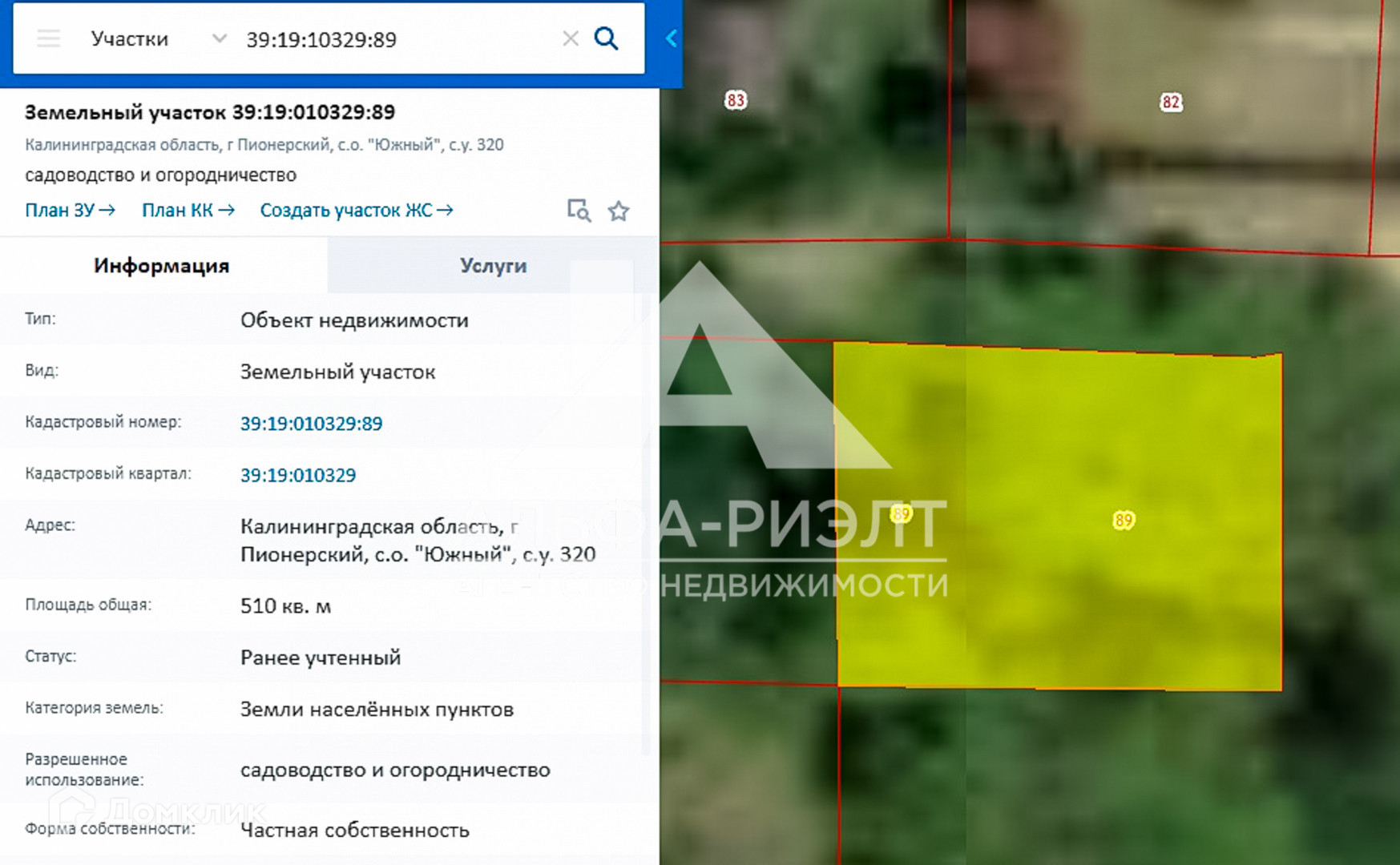 Кадастровый номер: 39:19:0101329:89