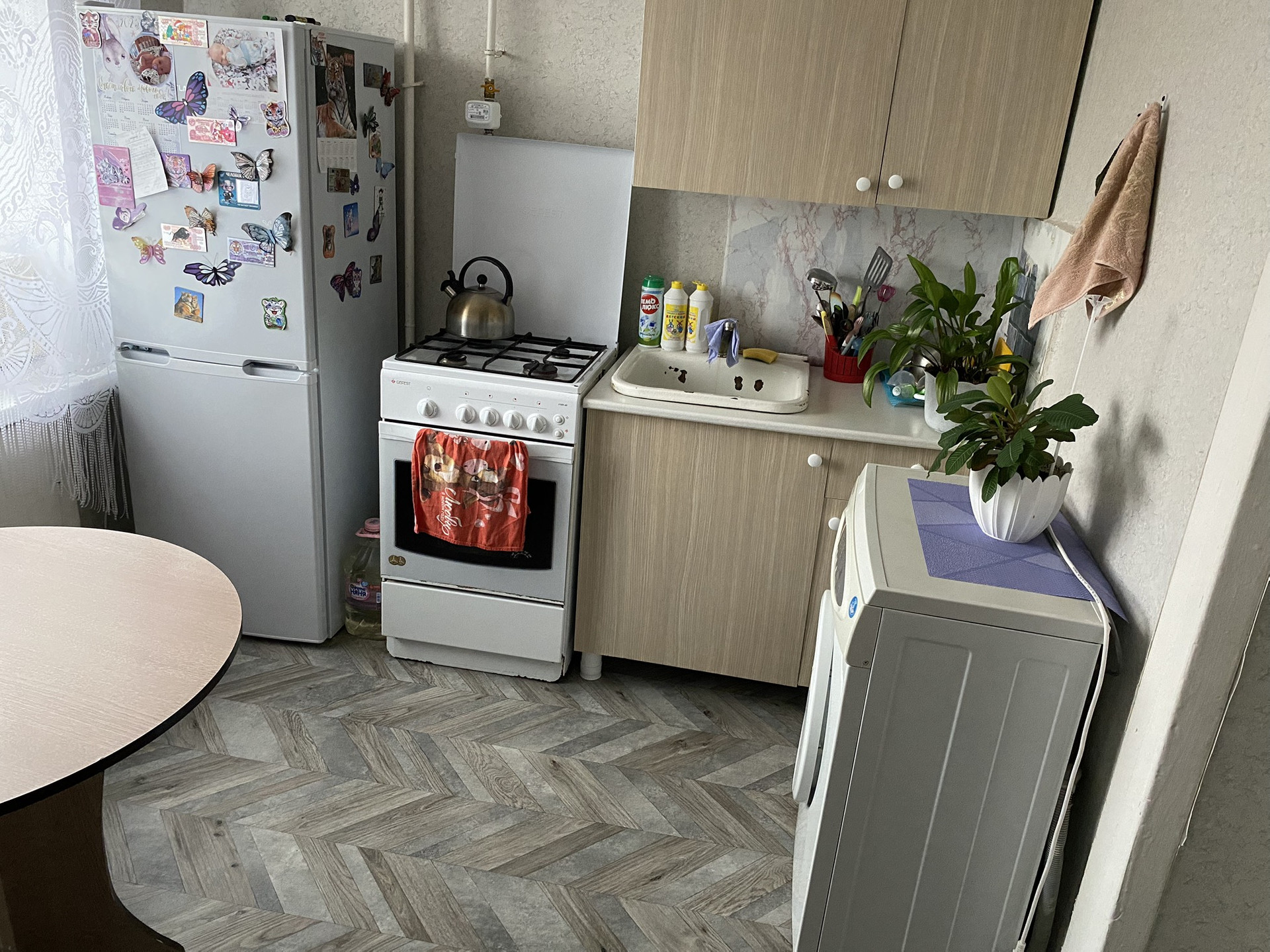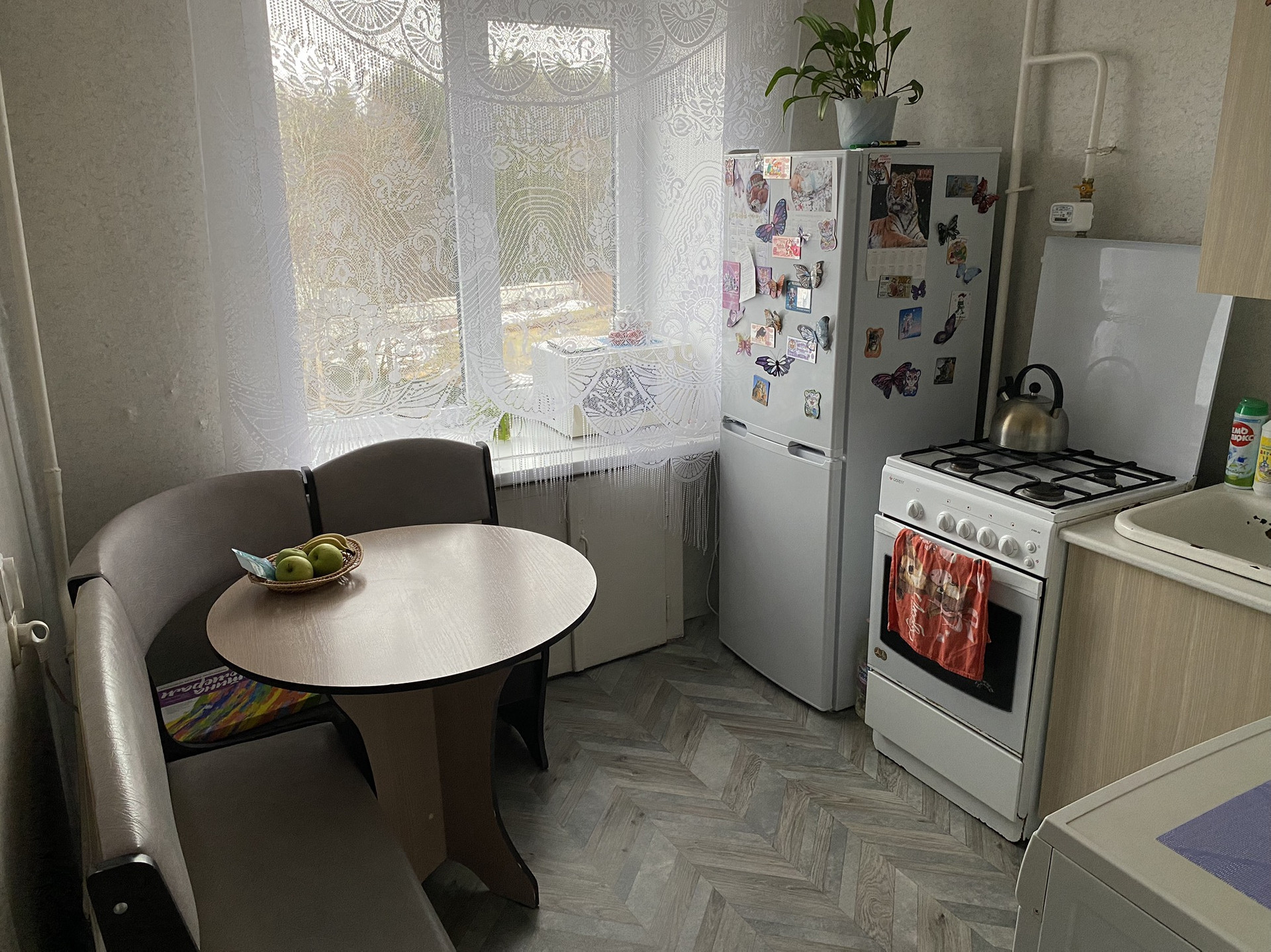 Уютная квартира,солнечная сторона ,остается кухонный гарнитур,санузел совмещен,есть балкон.парковка около дома,детская площадка,магазины КБ,Бристоль,Магнит