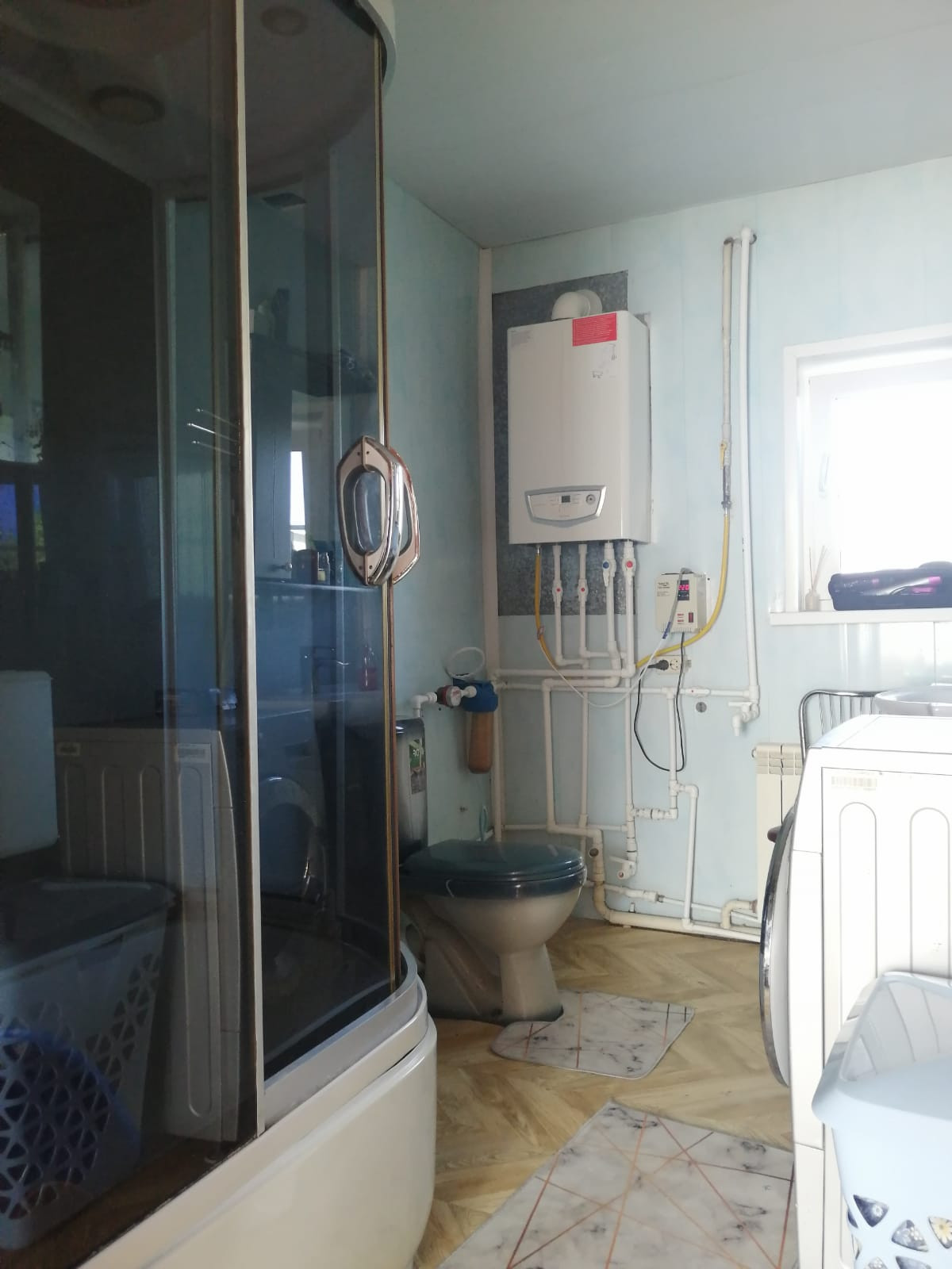 в доме 4 комнаты : 2 спальни, зал и кухня, коридор, прихожая. Комнаты раздельные. Большой санузел.Отопление - газовое, горячая/холодная вода, септик.