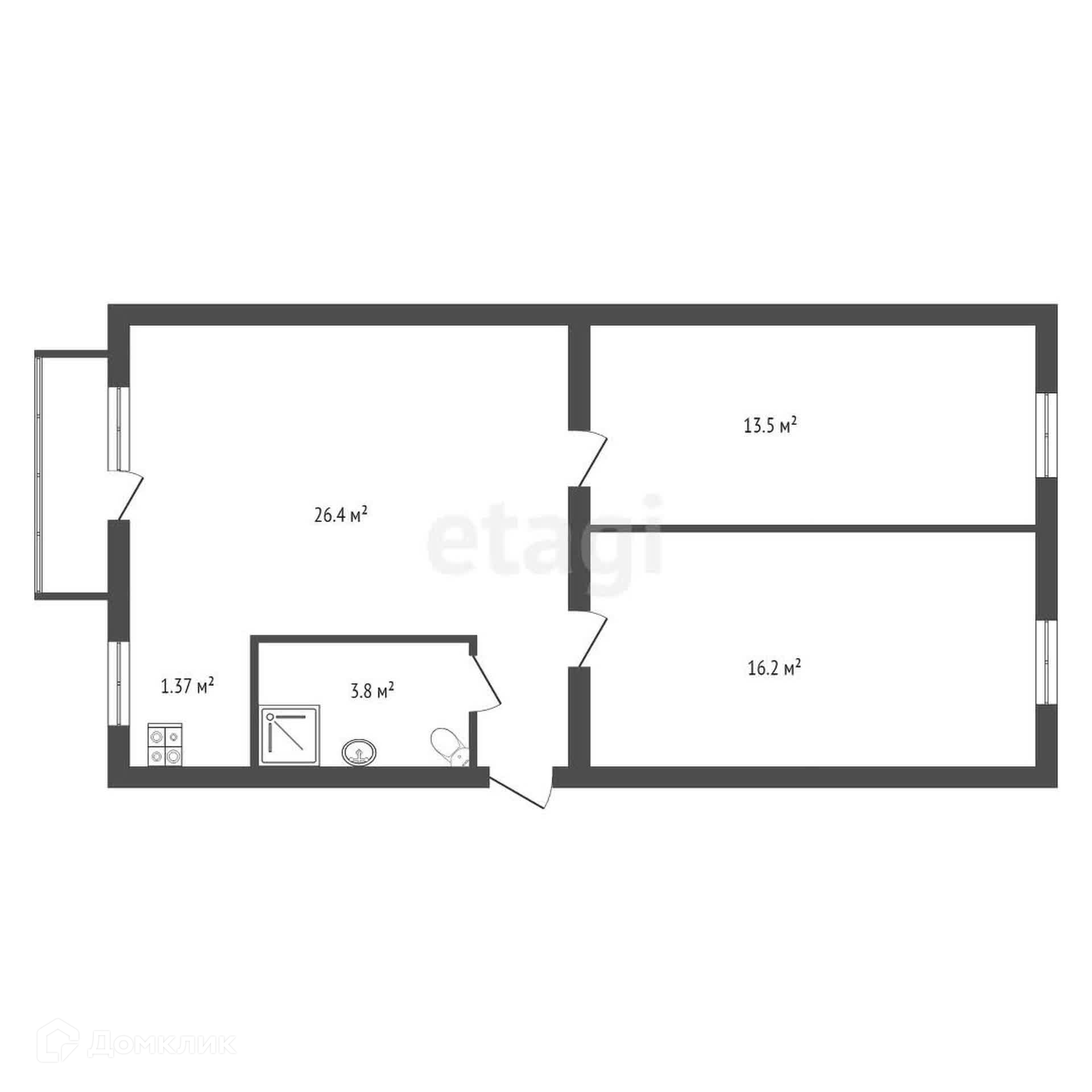 Общая площадь 60.8 м2