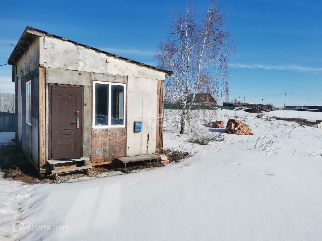 Земельный участок с лицевой стороны огорожен временным забором из профнастила на деревянном основании.