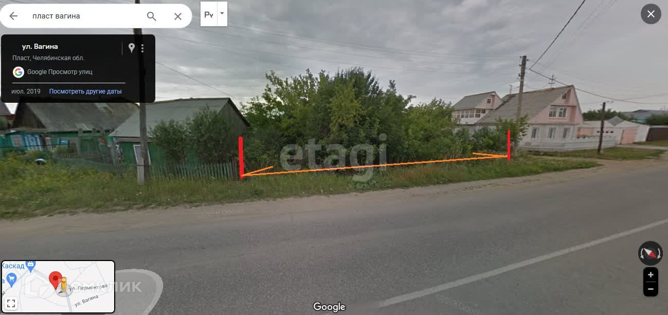 Просторный земельный участок, в центре города Пласт, по улице Вагина, площадью 10,9 соток, газ проходит по участку, водопровод и электросеть граничит, участок не разработан, ограждения нет. Межевание проведено.