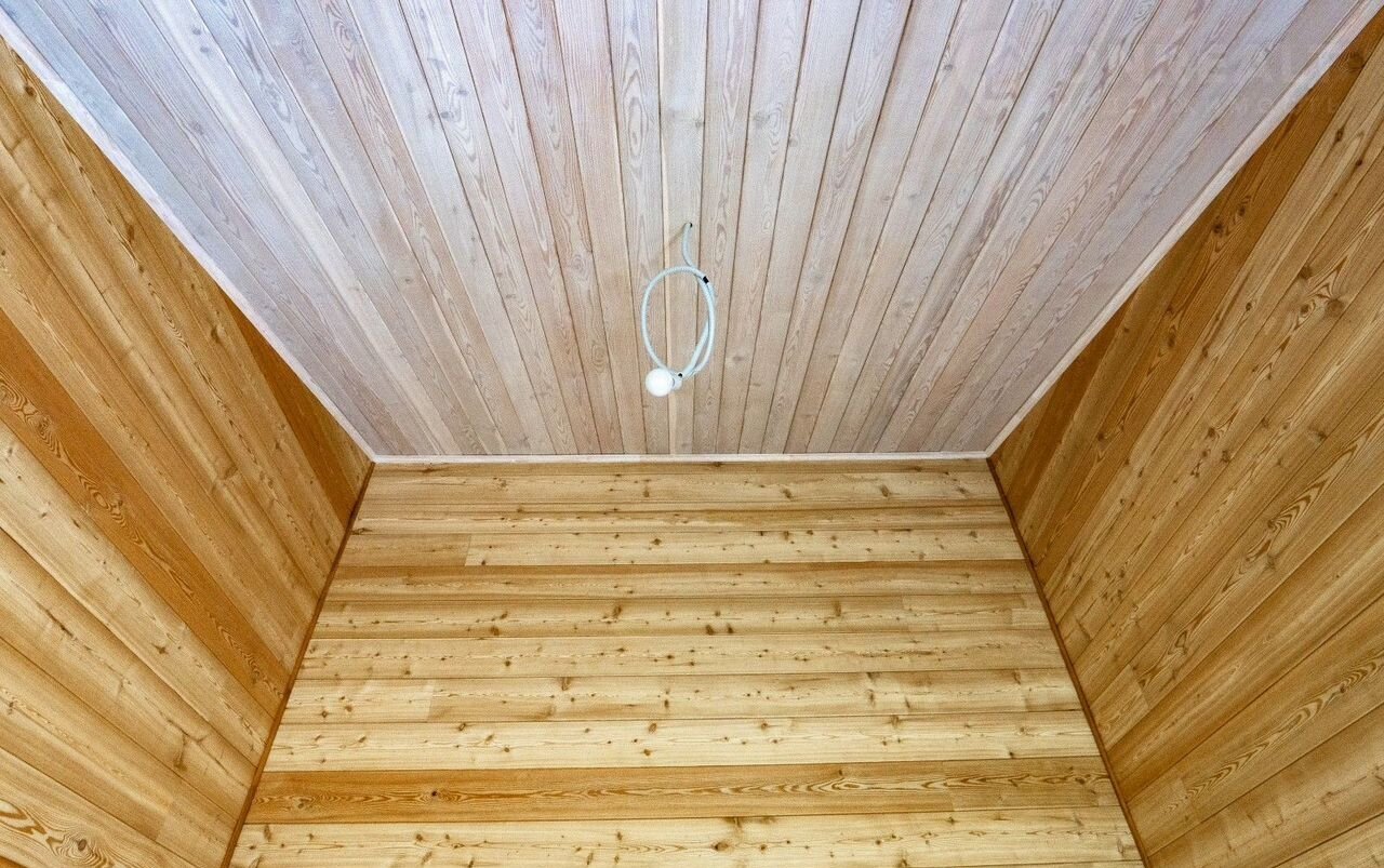 Фундамент – монолитная плита, стены – эковата, внутренняя отделка – лиственница.