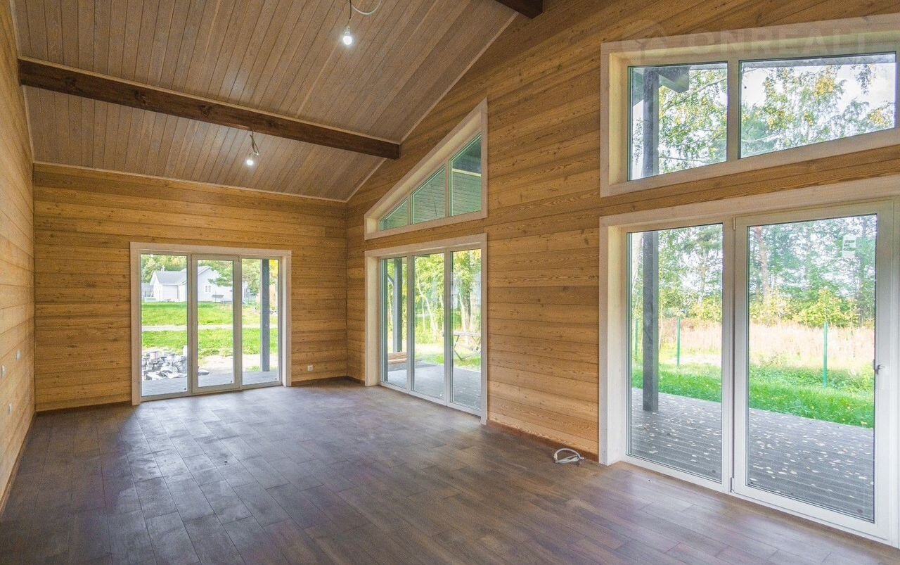 Общая площадь дома – 189 кв. м., состоит из четырех спален, кухни – гостиной с выходом на просторную террасу с видом на озеро, прихожей, гардеробной, технического помещения, сауны и двух с/узлов.