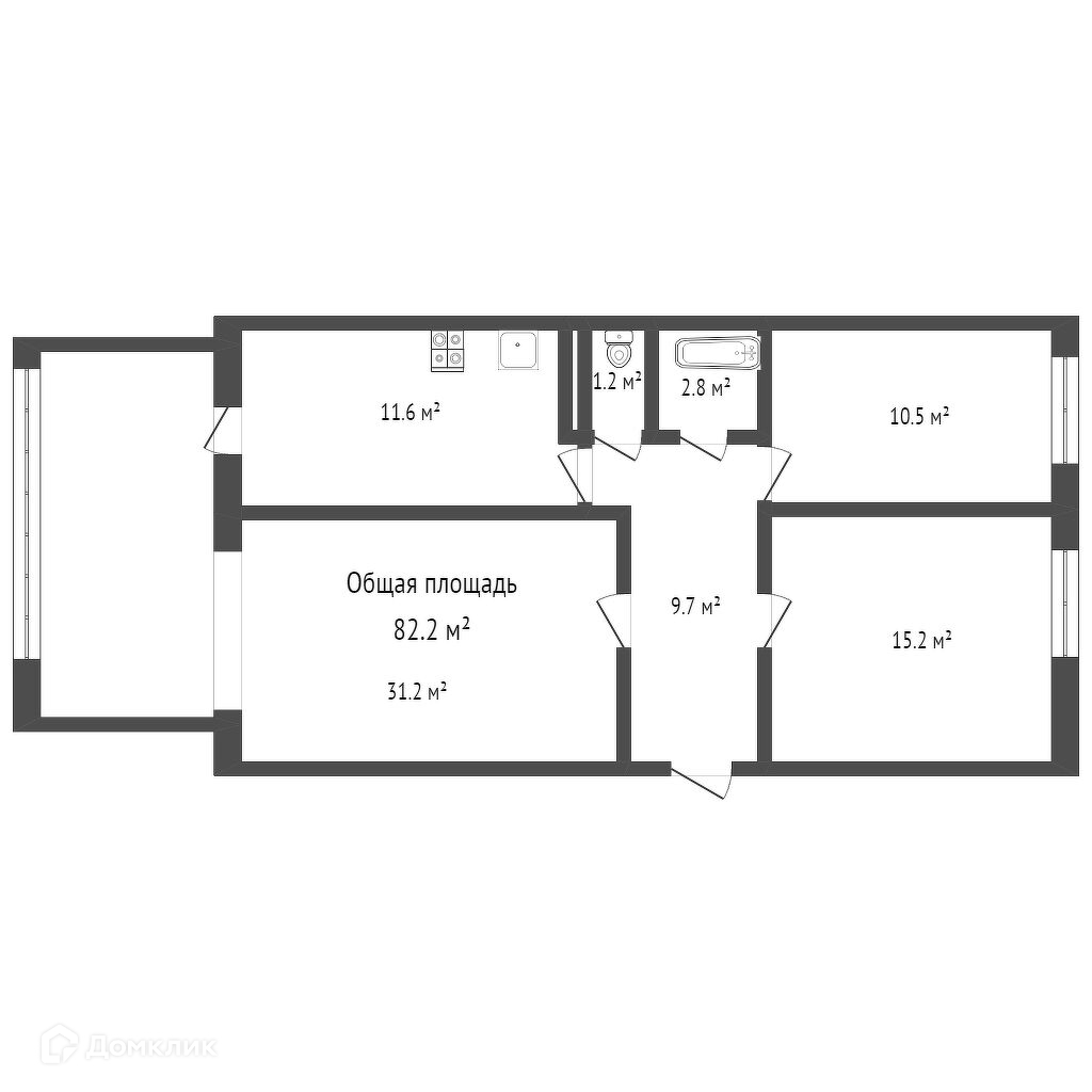 Общая площадь 82.2 м2