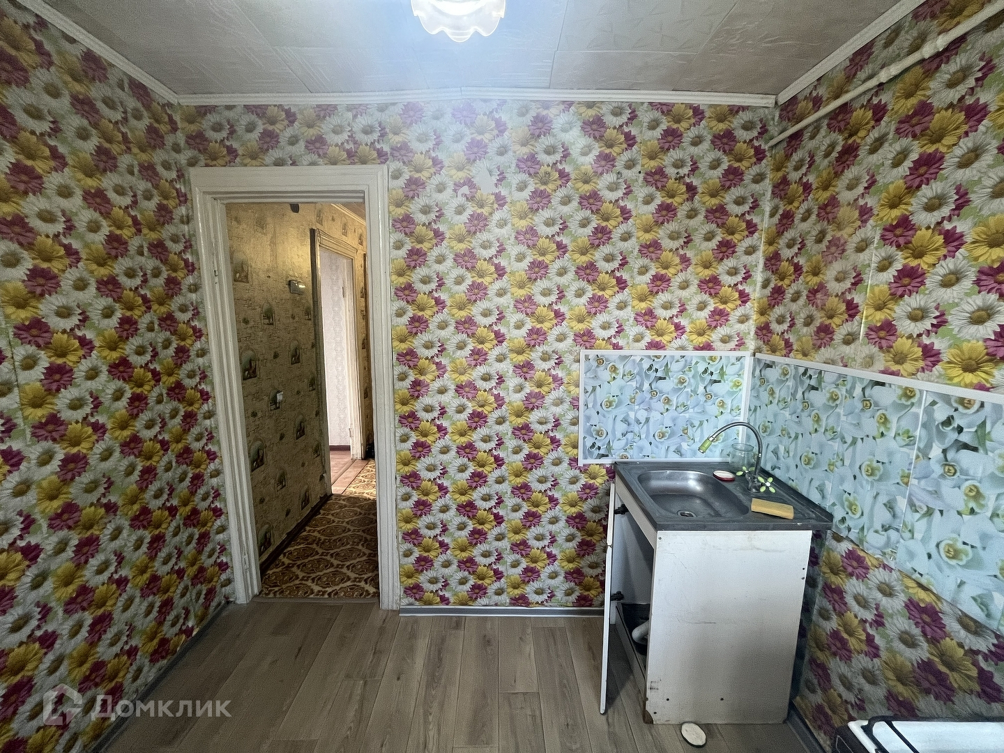 По всей квартире лежит линолеум. При продаже квартиры остается мягкий уголок.