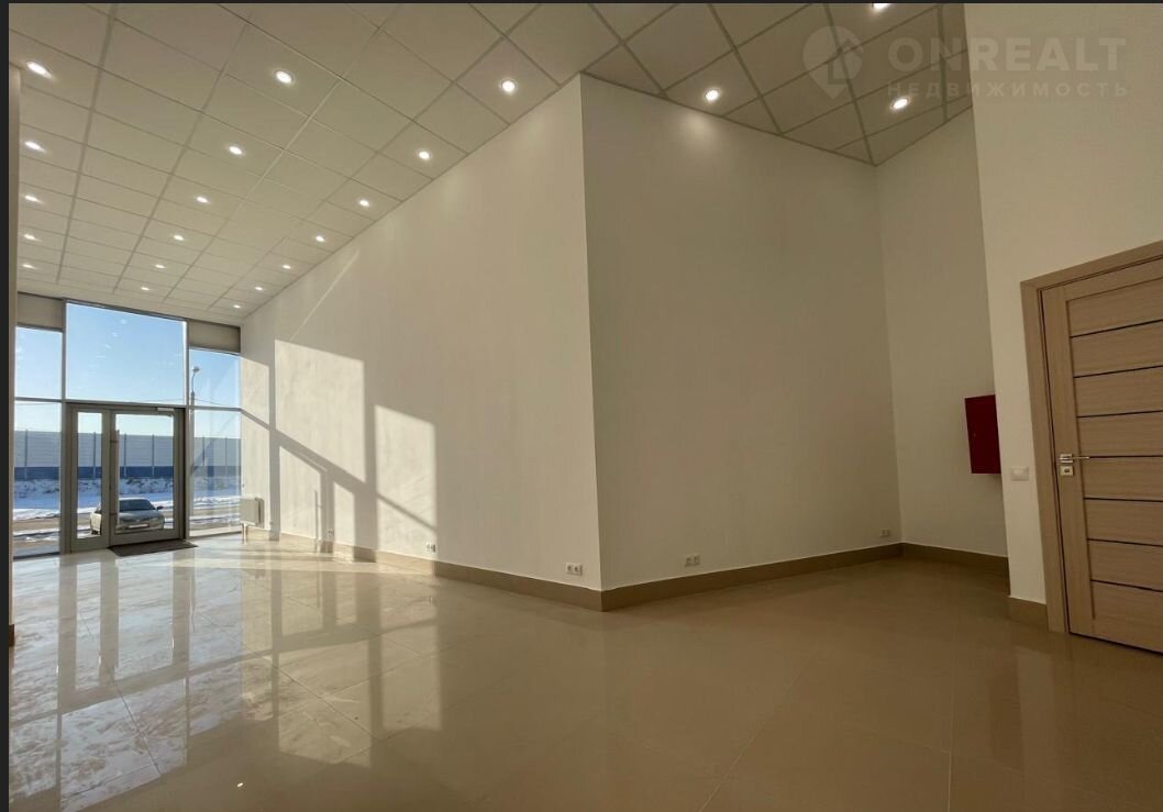 Преимущество данного помещение в том, что оно имеет огромные витражные окна на фасадной стене.