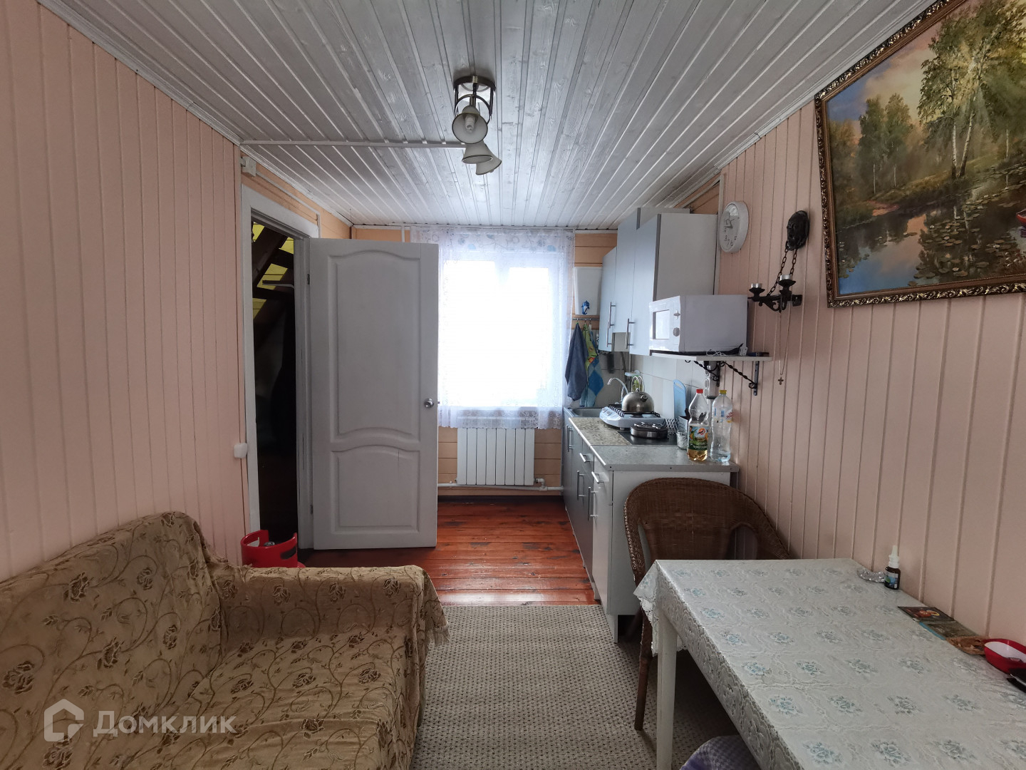 Дом 70 кв.м. фундамент столбчатый, стены - брус, кровля - ондулин. На первом этаже прихожая , кухня санузел. На втором этаже комната . Дом переоформлен в жилой. Есть возможность сделать прописку. Электроснабжение - центральное, водоснабжение -колодец, канализация - септик, отоплание - твердотопливный котел и электрический, при желании, можно жить круглогодично. На территории есть плодовые культуры. На участке есть дополнительные постройки: баня и  хозблок. Один собственник. Основание - Постановление от Администрации.