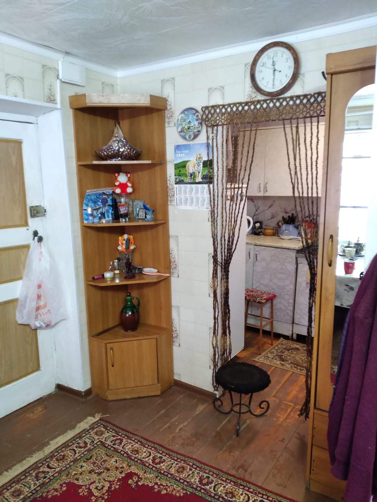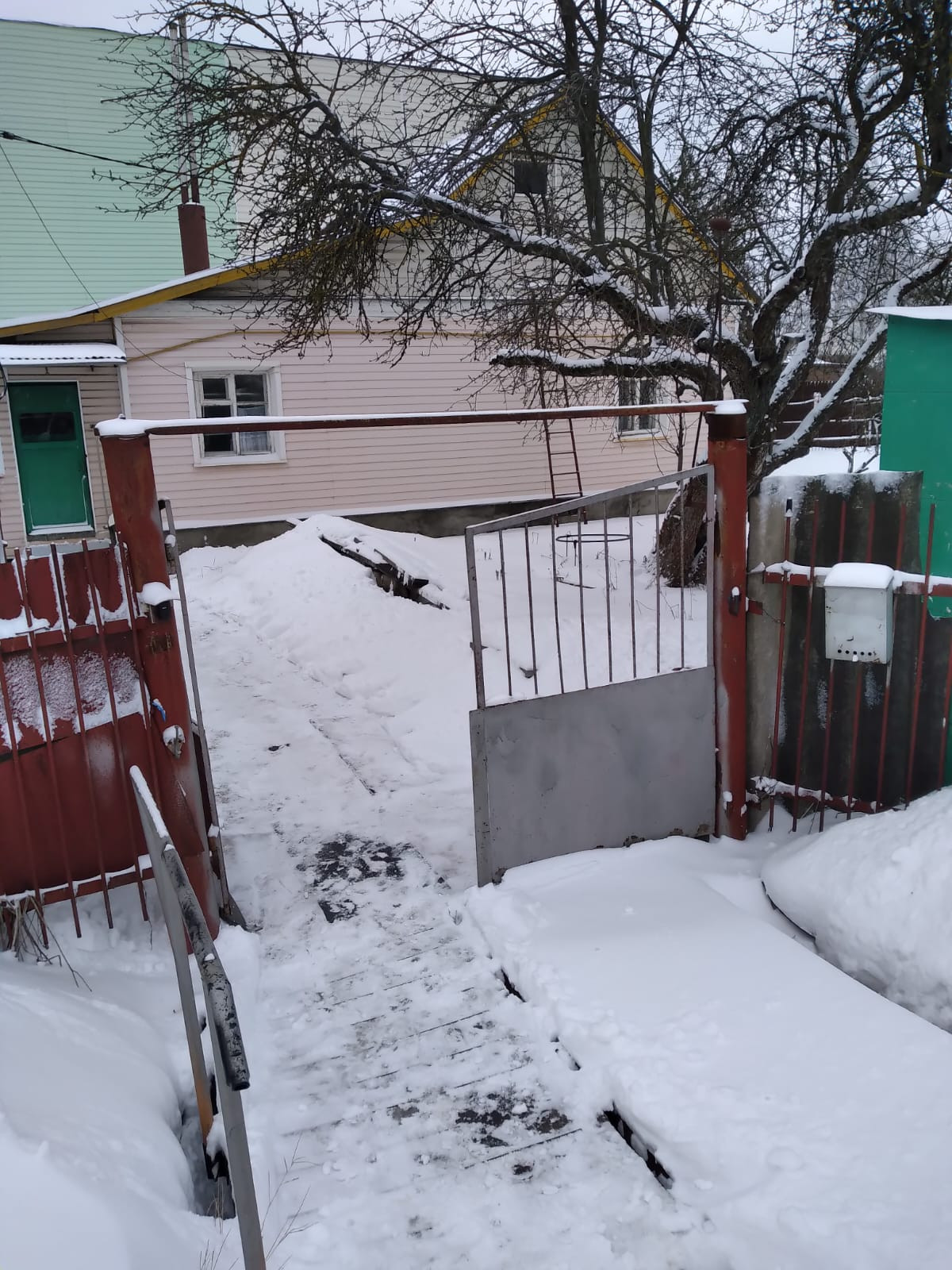 - просторный земельный участок 9.5 сотки, правильной прямоугольной формы, огорожен забором, есть въездные ворота, на участке много плодовых и лесных деревьев и кустов, теплица, парковка