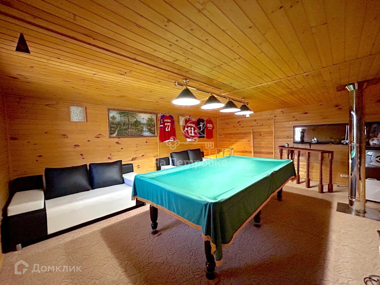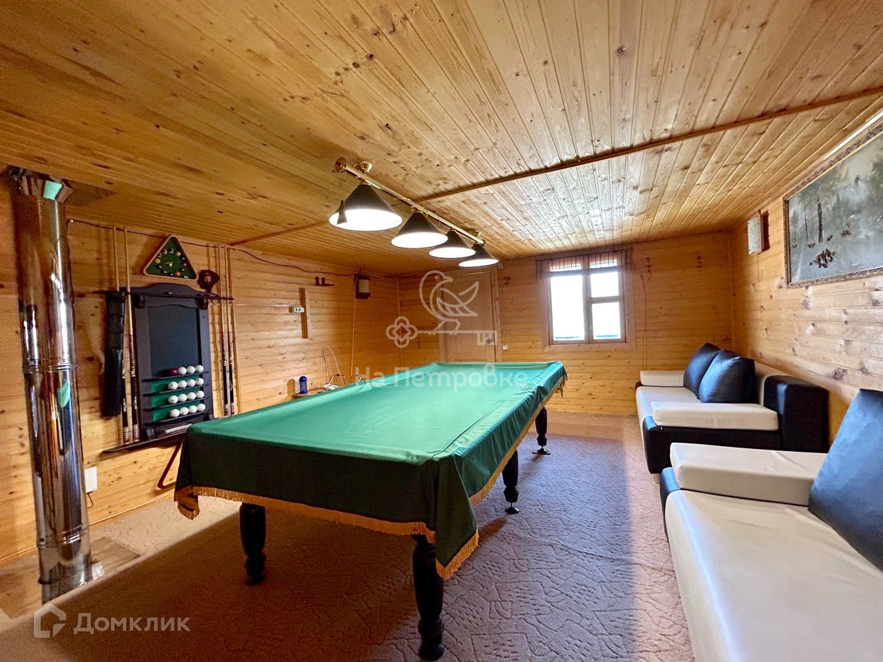 2 этаж: большое помещение для отдыха с диванами и бильярдом, балкон. Балкон со специальным укрытием на зиму.