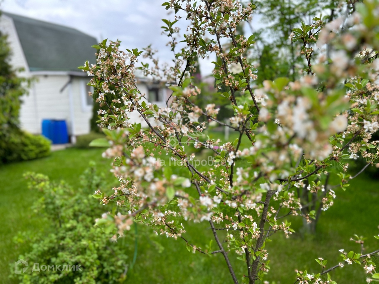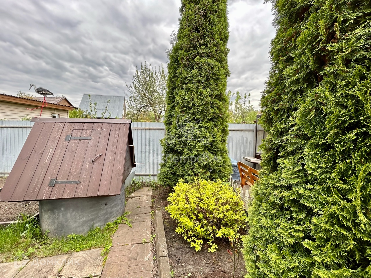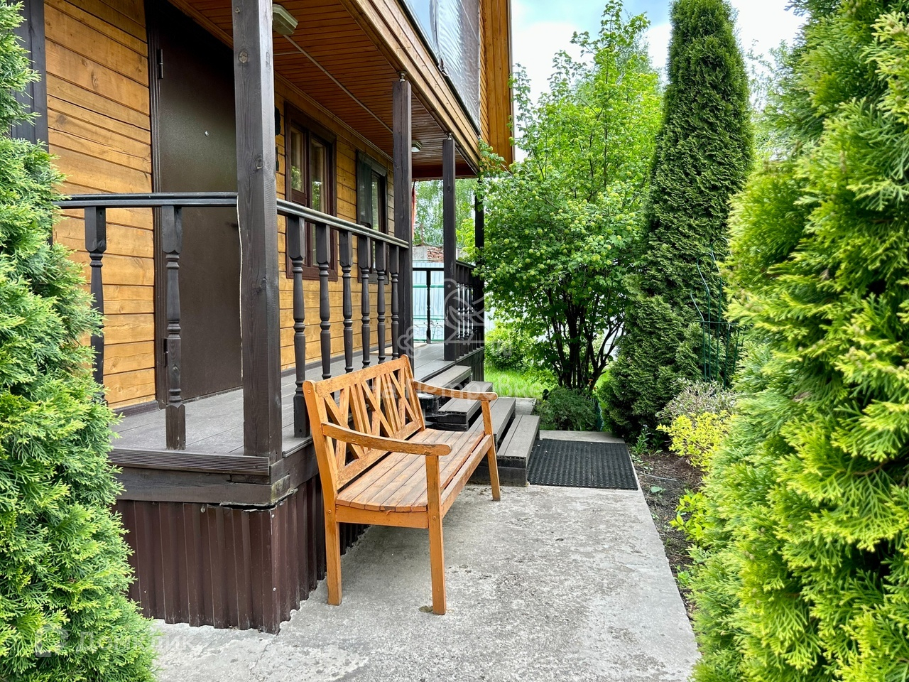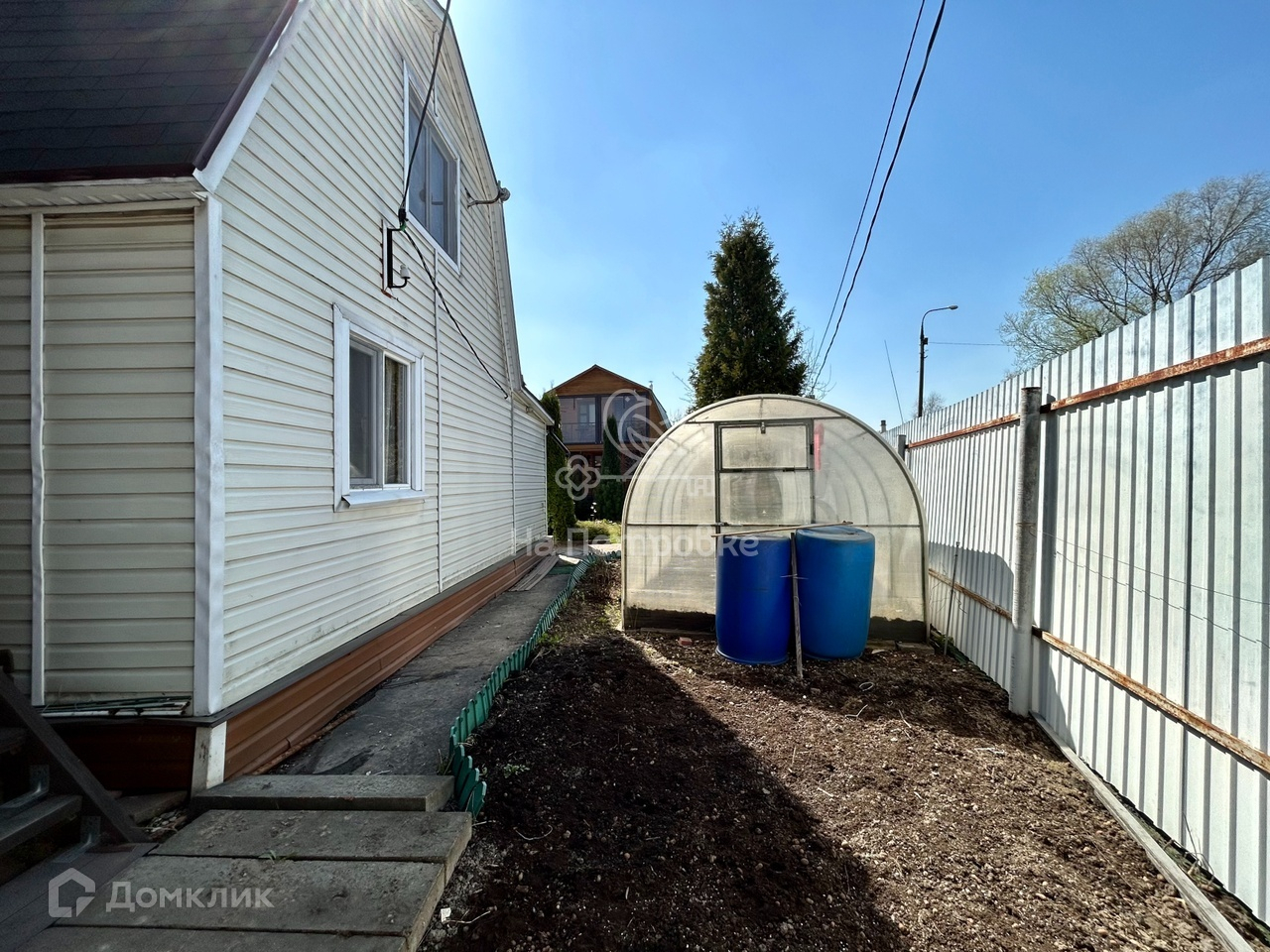 Очень ухоженный зеленый участок с кедровыми соснами. Есть парник, плодовые деревья и кустарники, грядки, газон, площадка для парковки 2-3 автомобилей, зона барбекю и цветники, хозблок.