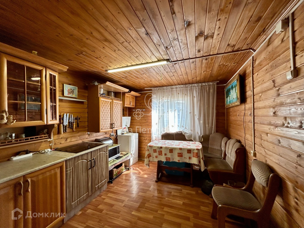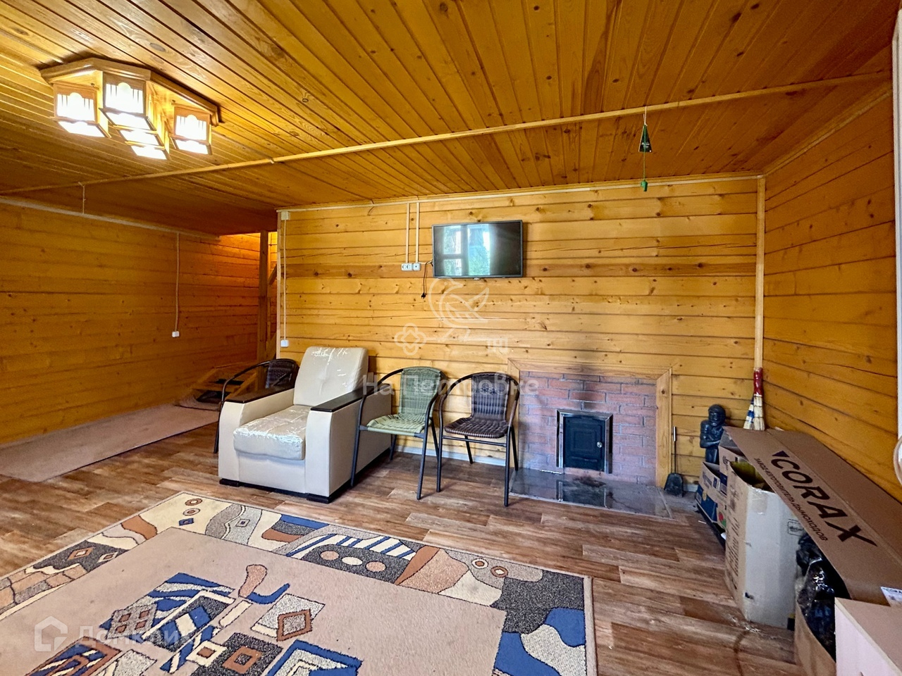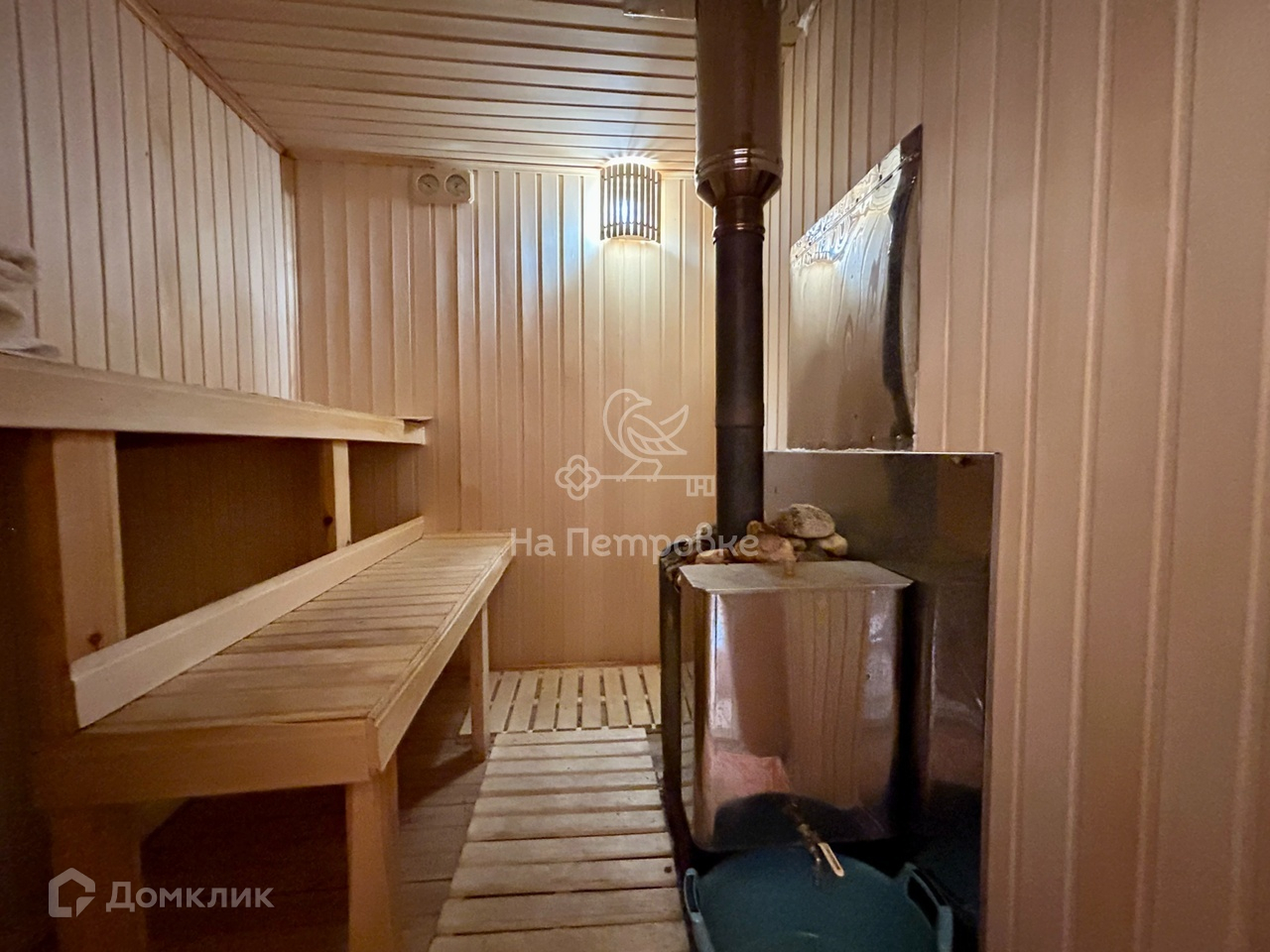 Гостевой дом-баня построен из бруса, внутренняя отделка - вагонка.