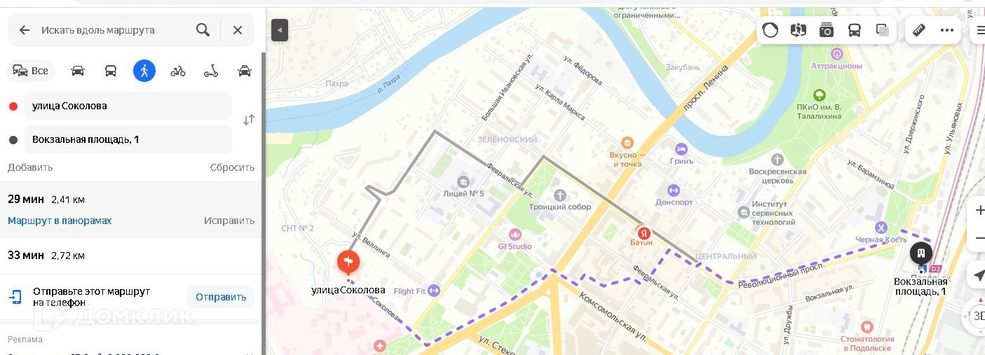 Хорошее транспортное сообщение по городу и во всех направлениях на Москву как на личном, так и на общественном транспорте. До МЦД 2 «Подольск» 20 мин. пешком.