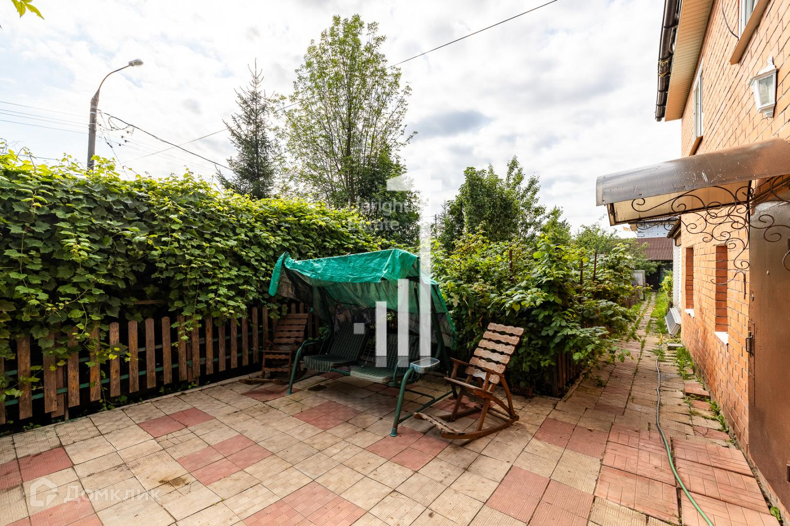 В саду плодовые кусты и деревья, теплицы. Также оборудован вольер для собаки.