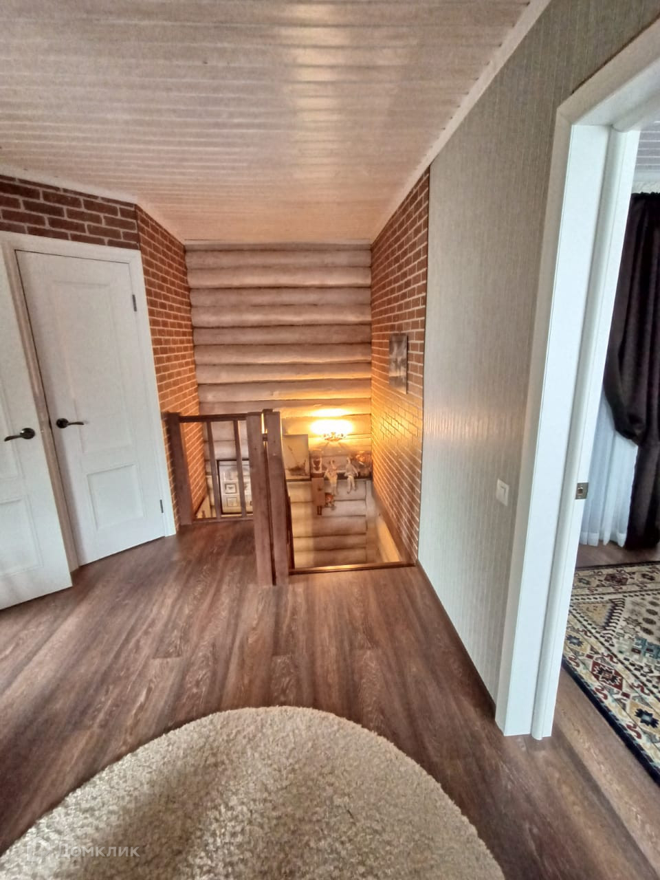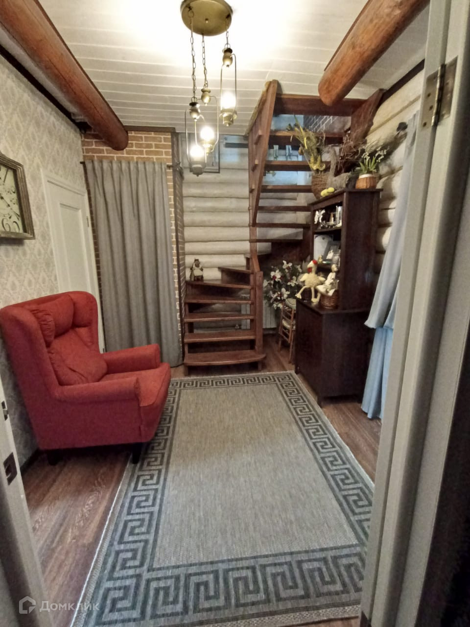 Первый этаж: прихожая 4,5 кв.м, просторных холл 10 кв.м, комната 16,5 кв.м, кухня 10,5 кв.м и санузел. Удобная винтовая лестница.