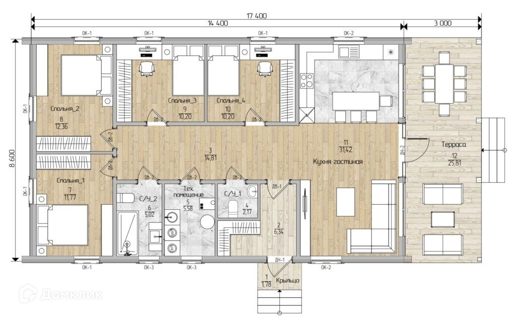 Жилая площадь 80 м2