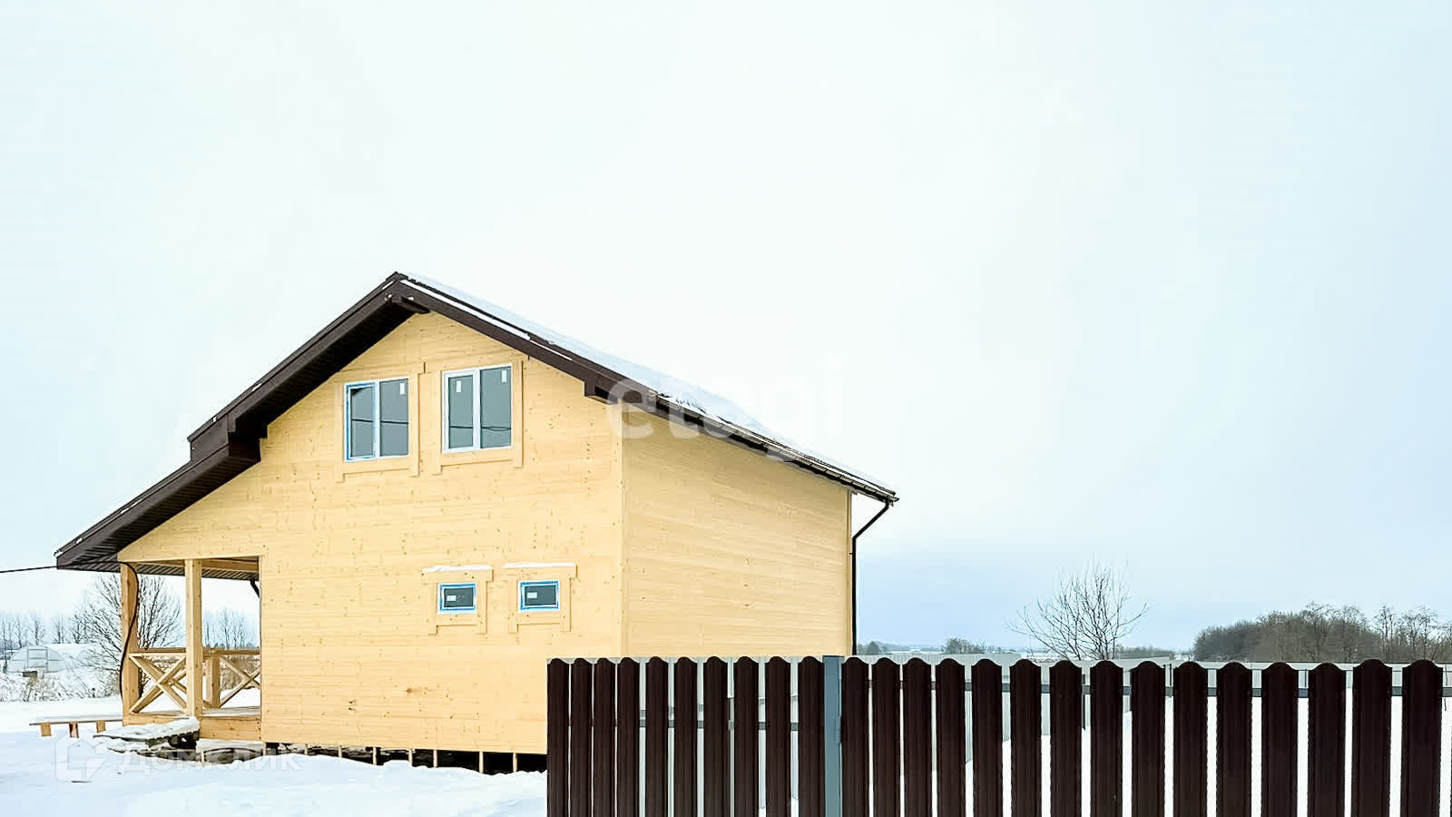 Двухэтажный дом 100 кв. м. построен по каркасно-щитовой технологии , фундамент - винтовые сваи, полностью утеплён, крыша метал. черепица, снаружи имитация бpуcа, окна качественные ПВХ, Высокие потолки, вода скважина, установлен септик, электричество разводка по дому в железной гофре. Утепленная и надежная входная дверь с 2-мя терм. разрывами, рассчитанная на морозы до -50 гр.