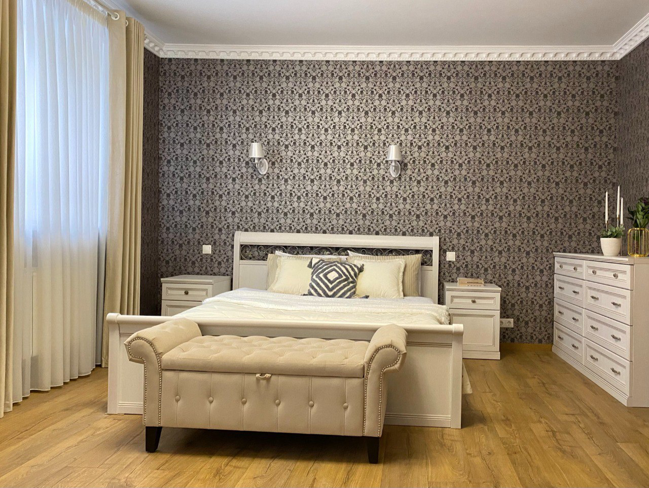 Отделка выполнена по индивидуальному проекту с использованием высококачественных и экологически безопасных материалов известных мировых брендов.