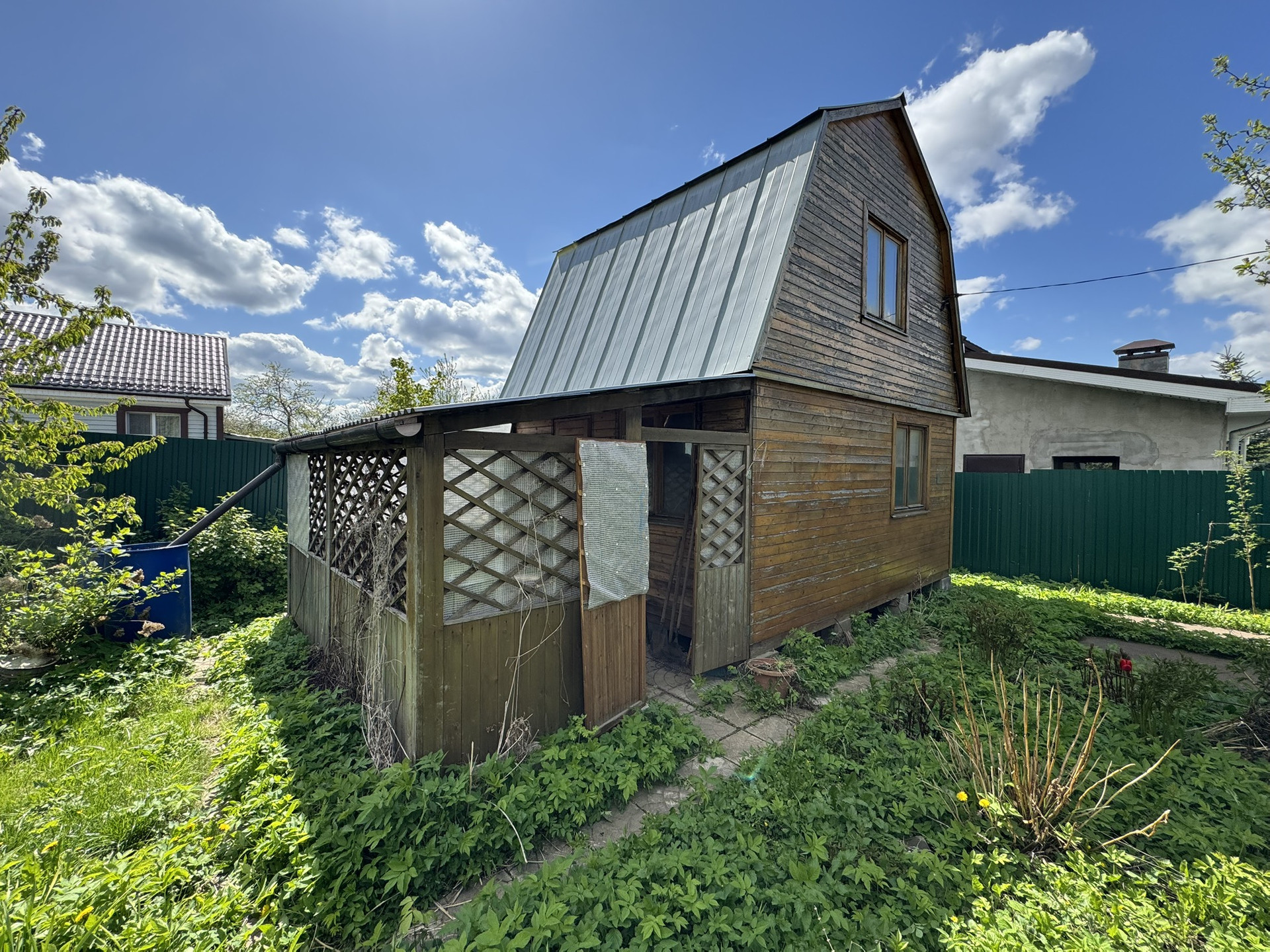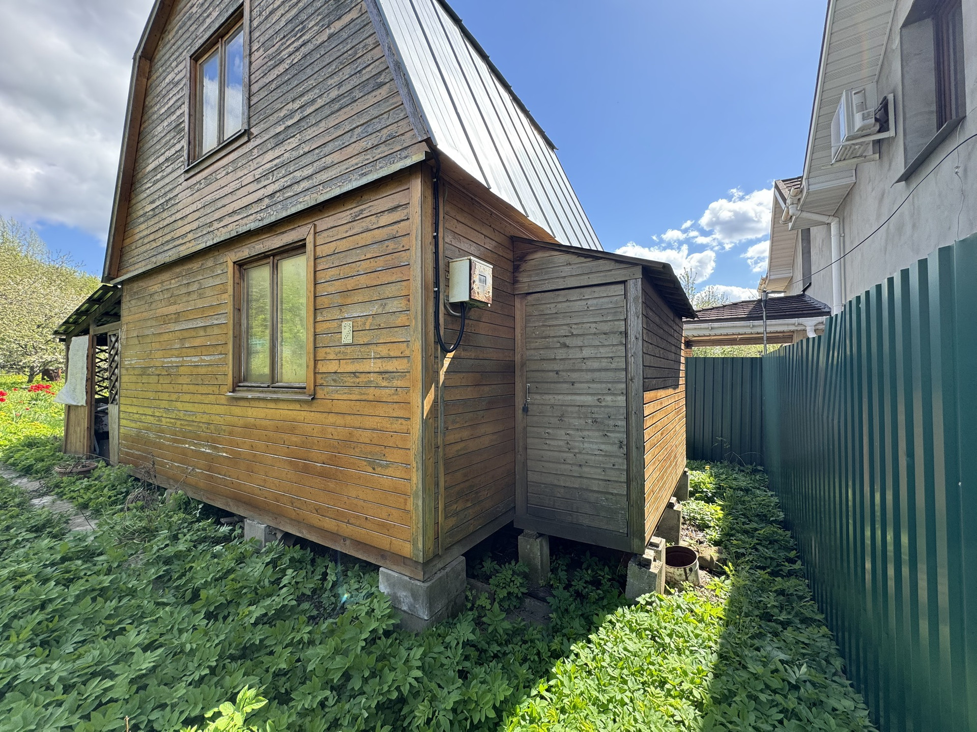 - Садовый дом, общ. пл. 30,5 кв.м, 2010 года постройки, фундамент - опорные столбы из бетонных блоков, материал стен - каркасный. 1-й этаж утеплен.