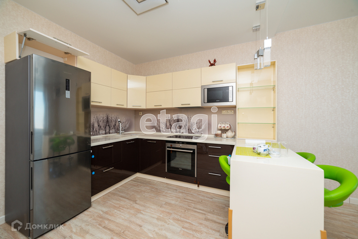 Продаётся шикарная квартира с современным ремонтом, в квартире остаётся кухня с техникой ведущих производителей, встроенный гардероб и сантехника.