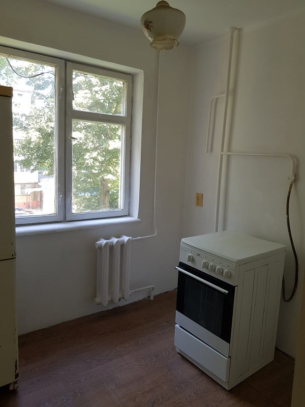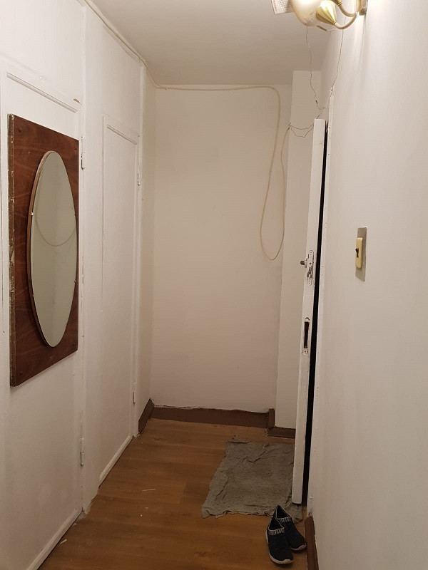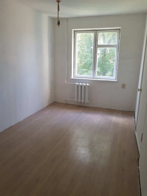 Квартира в предчистовой отделке, стены и потолки выровнены, углы выведены. Осталось поклеить обои либо покрасить.