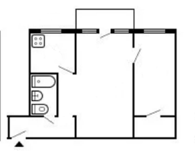 Смежные комнаты при желании можно сделать изолированными.  Санузел совмещенный, отделан плиткой.