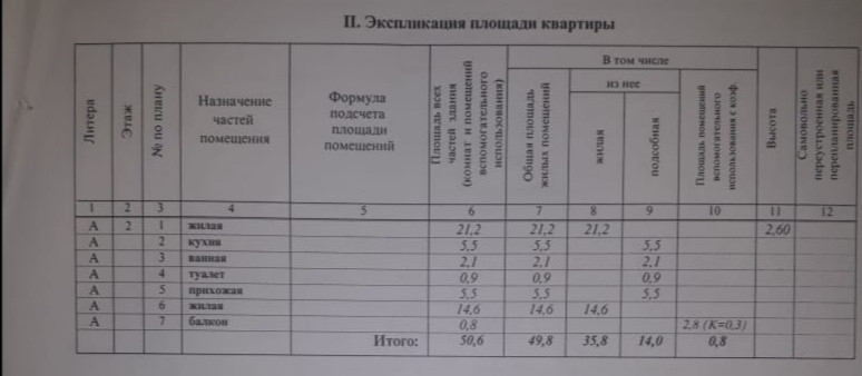 Общая площадь 50.6 м2