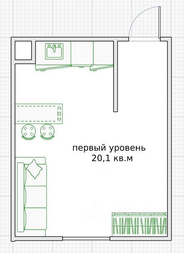 Общая площадь 38 м2