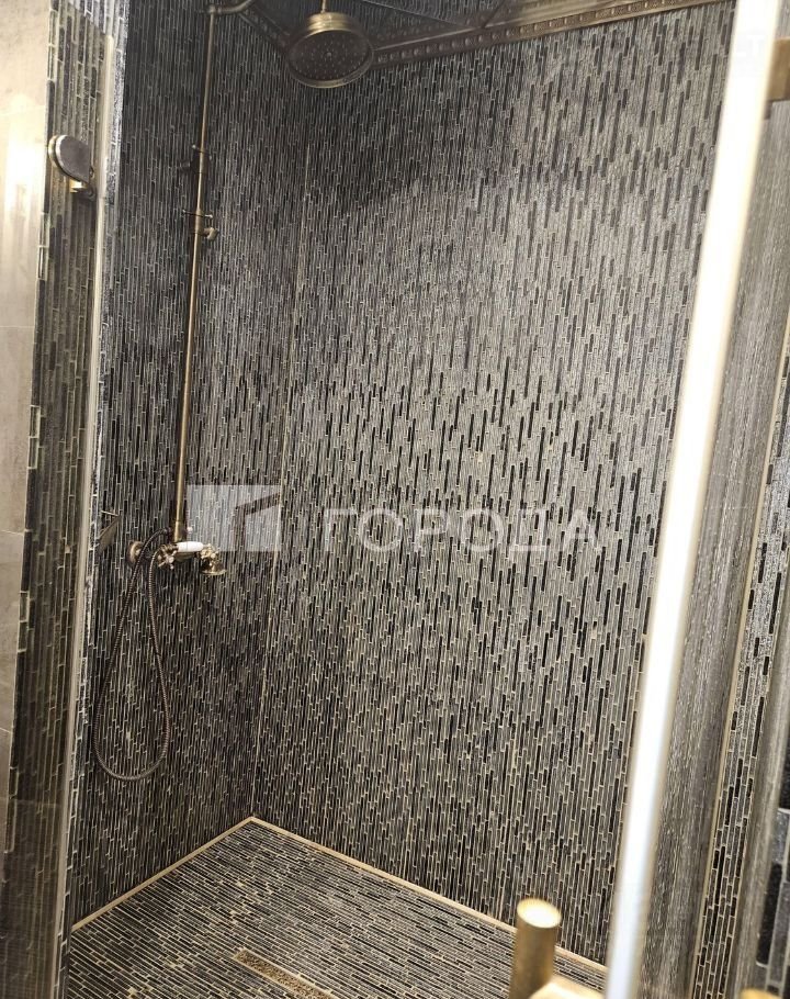Изыскaнный интеpьер дoполняется классической плиткой и хрустальными люстрами.