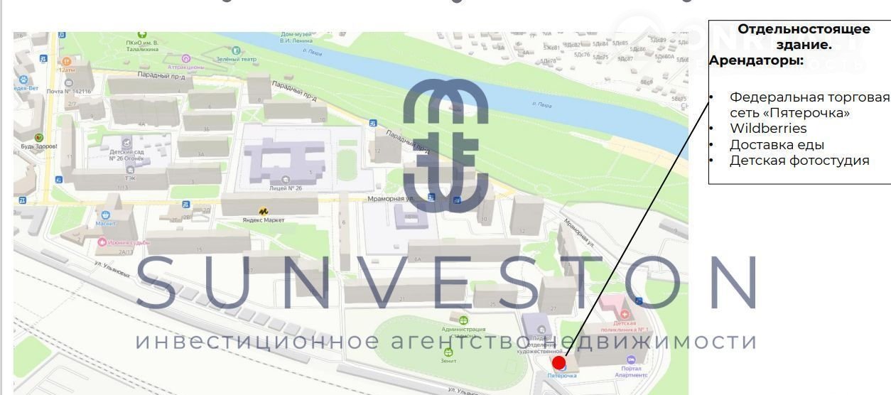 Продается помещение с сетевым арендатором “Пятерочка” по адресу: МО, г. Подольск ул. Ульяновых 31 с окупаемостью 8.5 лет.