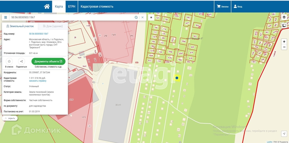 Участок в СНТ, 6.31 сот. на продажу в Подольске, 4-я улица