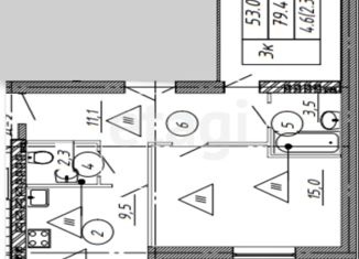 Общая площадь: 53.4 м2