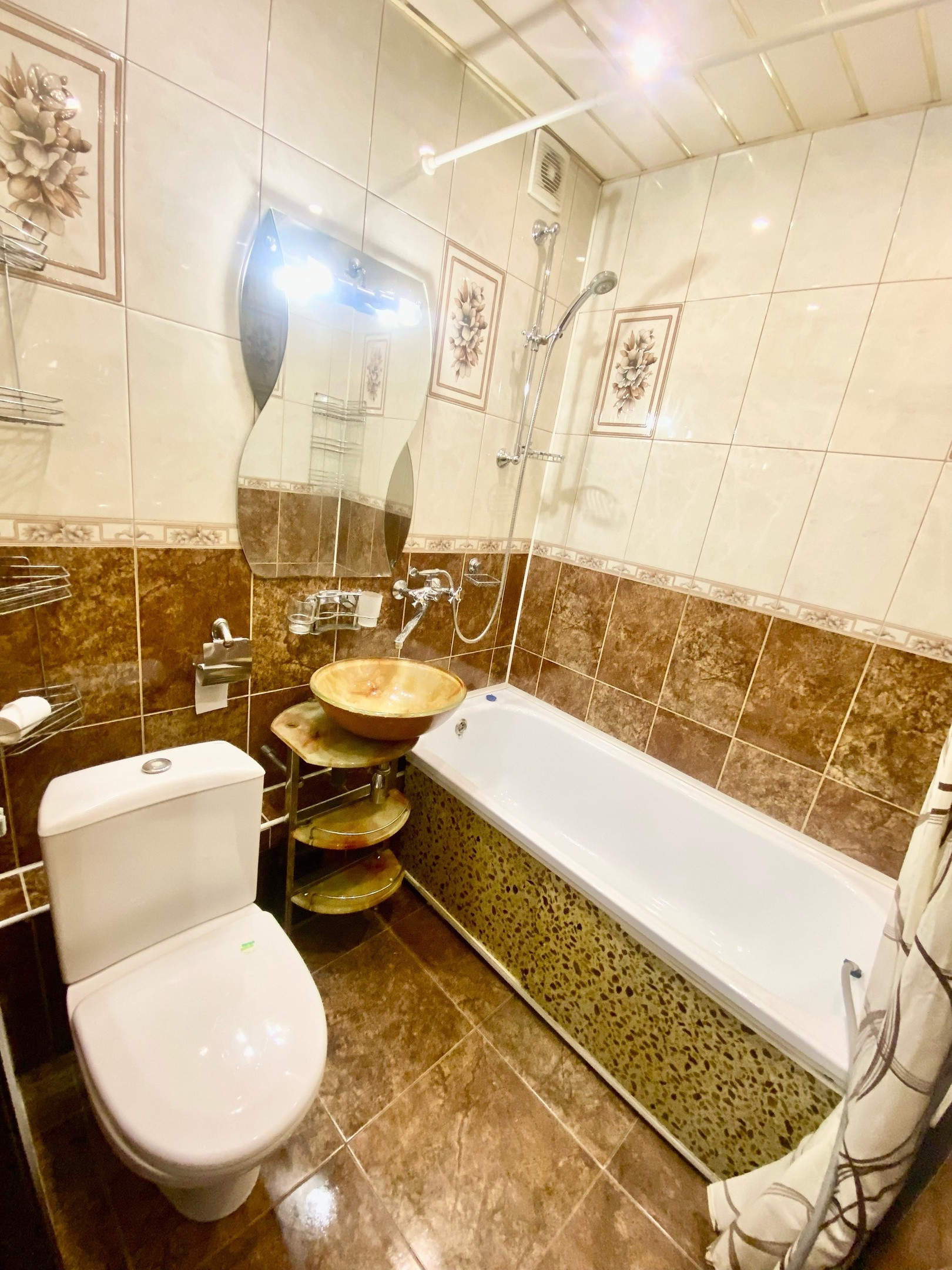 Сан узел ванна и туалет совмещённые.