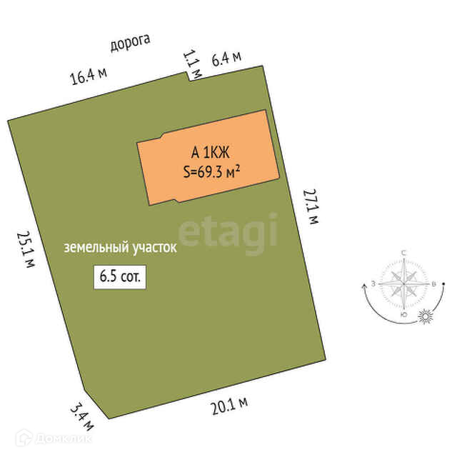 Площадь участка 6.5 сот.