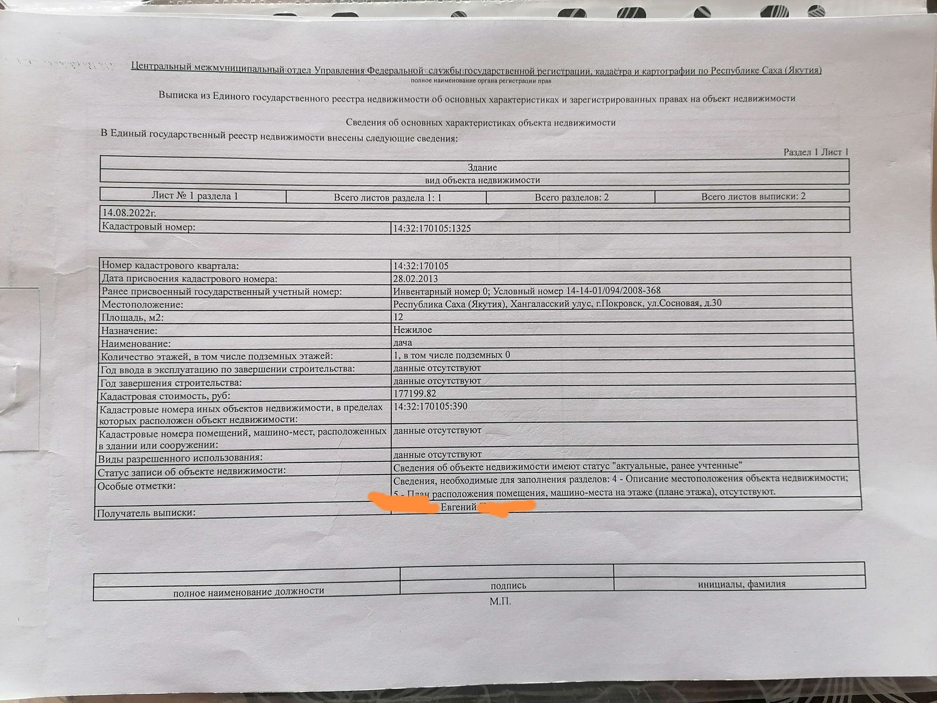 Кадастровый номер земельного участка 14:32:170105:390