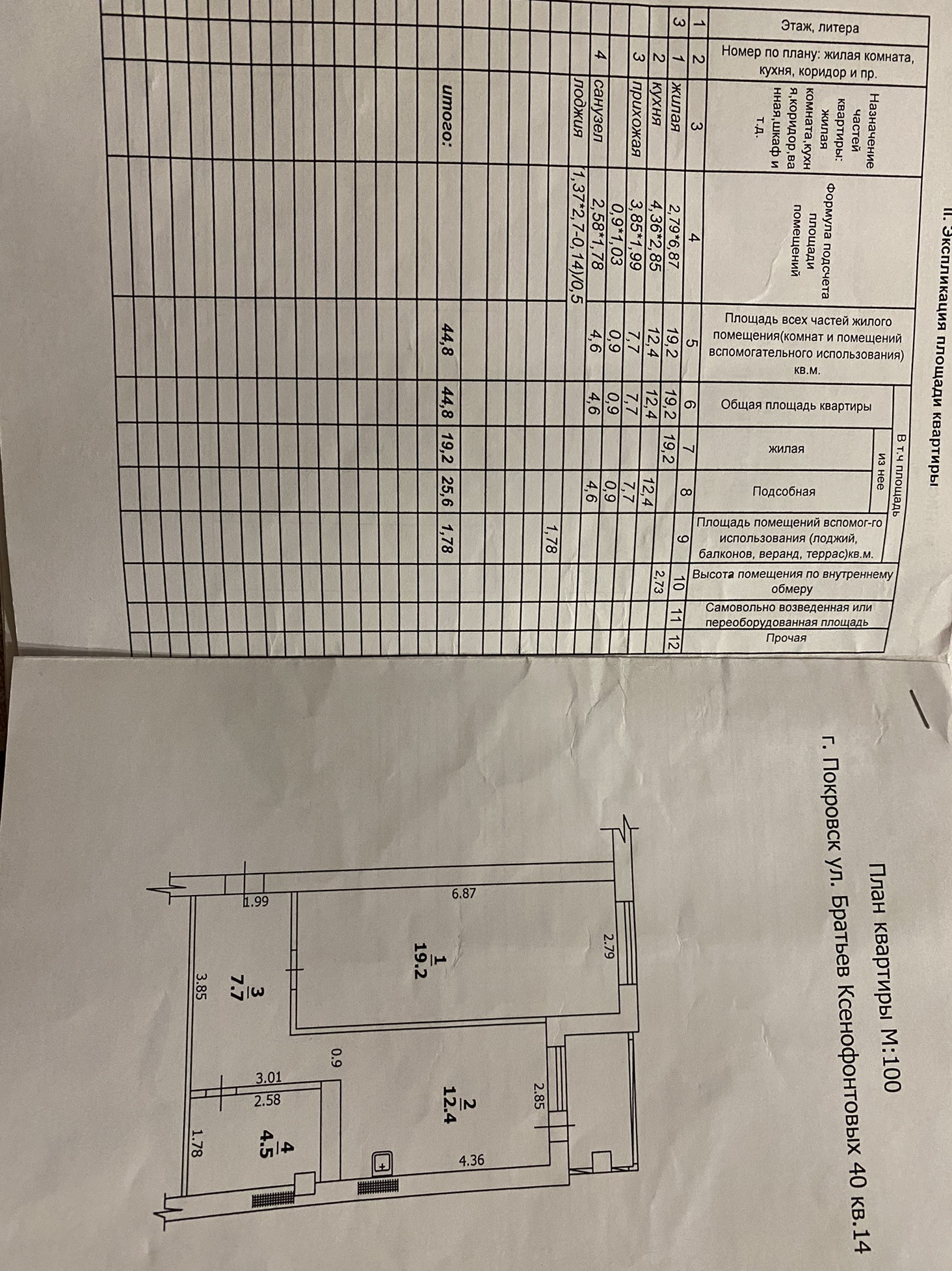 -Площадь без учета балкона 44,8 ( с балконом 46,58 кВ м)