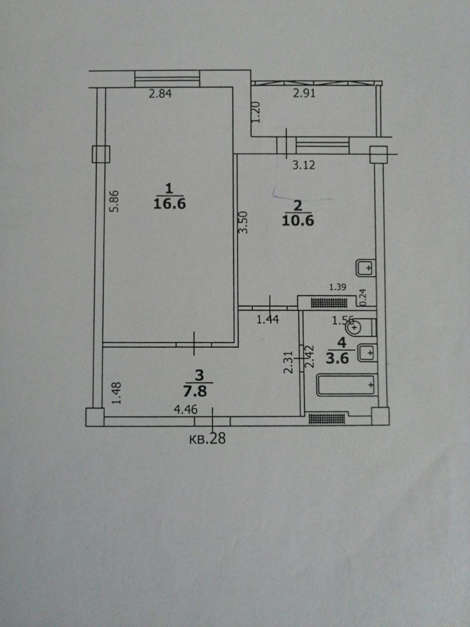Общая площадь 38.6 м2