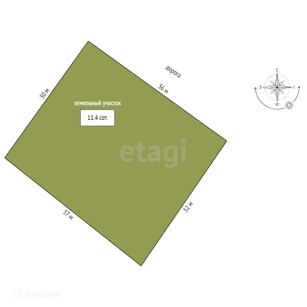Площадь участка 11.4 сот.