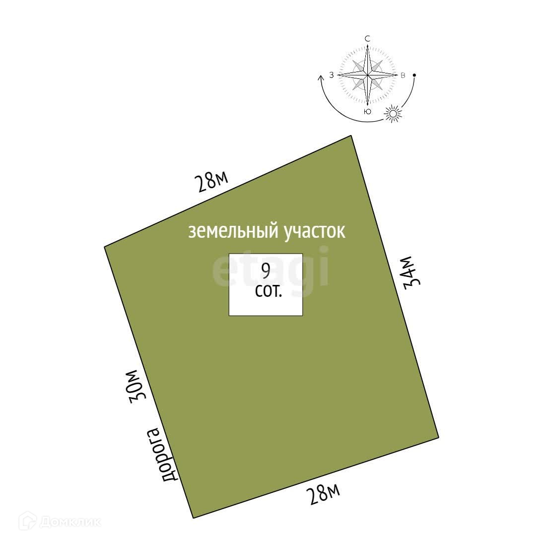 Площадь участка 9 сот.